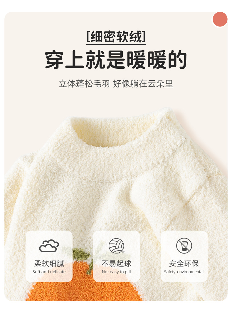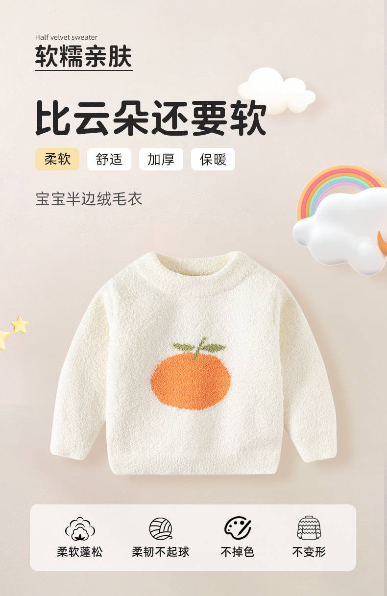 오렌지 하프 벨벳 어린이 스웨터 클래스 푹신한 부드러운 왁스 두꺼운 아기 스웨터 가을과 겨울 따뜻한 아기 스웨터