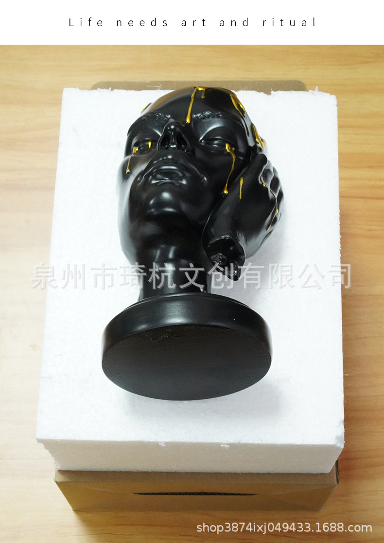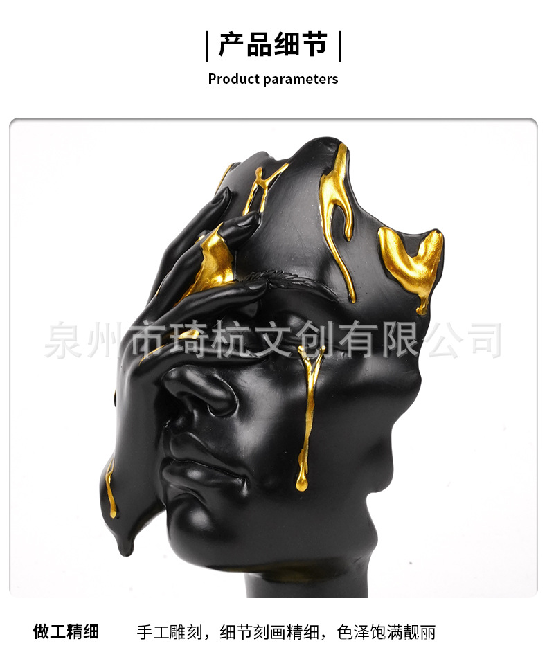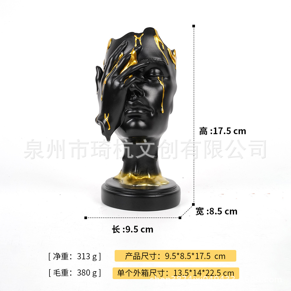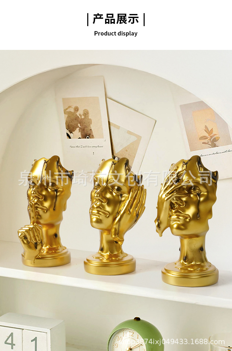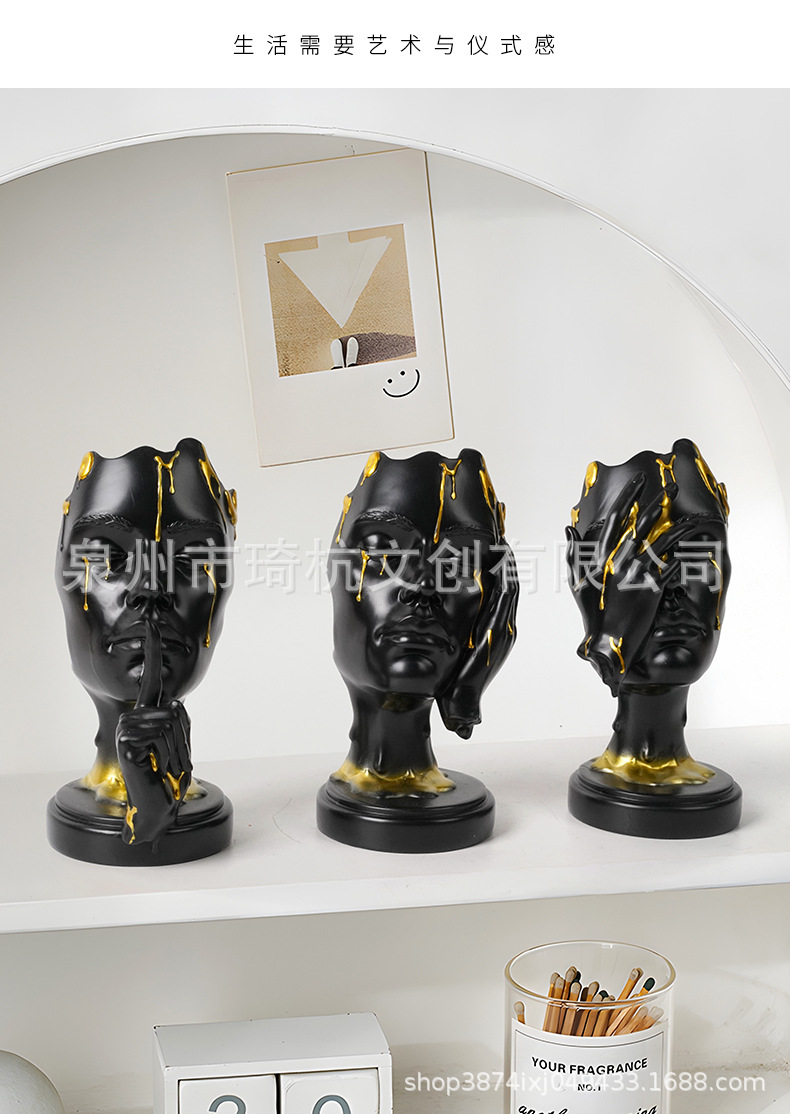 국경 간 뜨거운 신제품 추상 캐릭터 장식품은 듣지 않고, 보지 말고, 검은 흐르는 금 현관 거실 수지 장식을 말하지 마십시오
