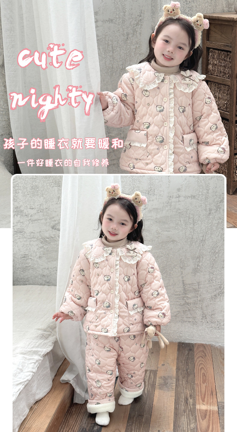 겨울 여성의 새로운 코듀로이 파자마 기모 두꺼운 3 층 퀼트 홈 의류 세트 만화 유행 아동복