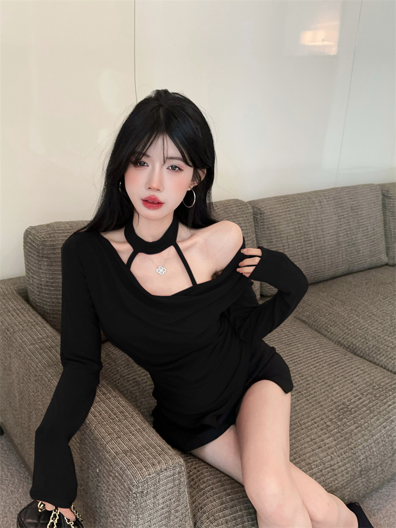 스파이스 걸스 순수한 욕망 프랑스 스타일 교수형 목 스윙 칼라 탑 여성의 가을 불규칙한 틈새 칼라 할로우 섹시 베이스 셔츠 트렌디스토어 가기