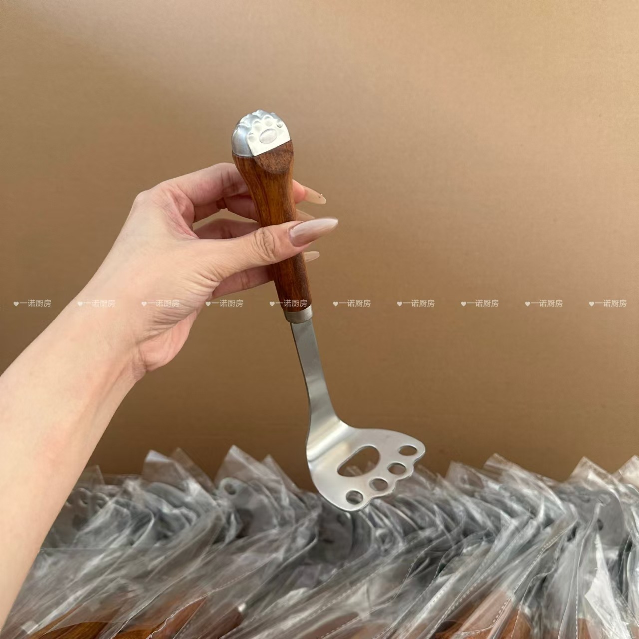 Yino 주방 304 스테인레스 스틸 가정용 주방 고양이 발톱 감자 프레스 다기능 나무 손잡이 주방 가제트스토어 가기