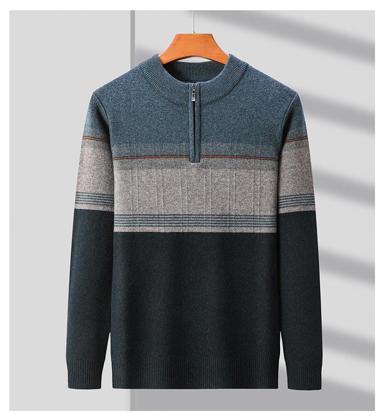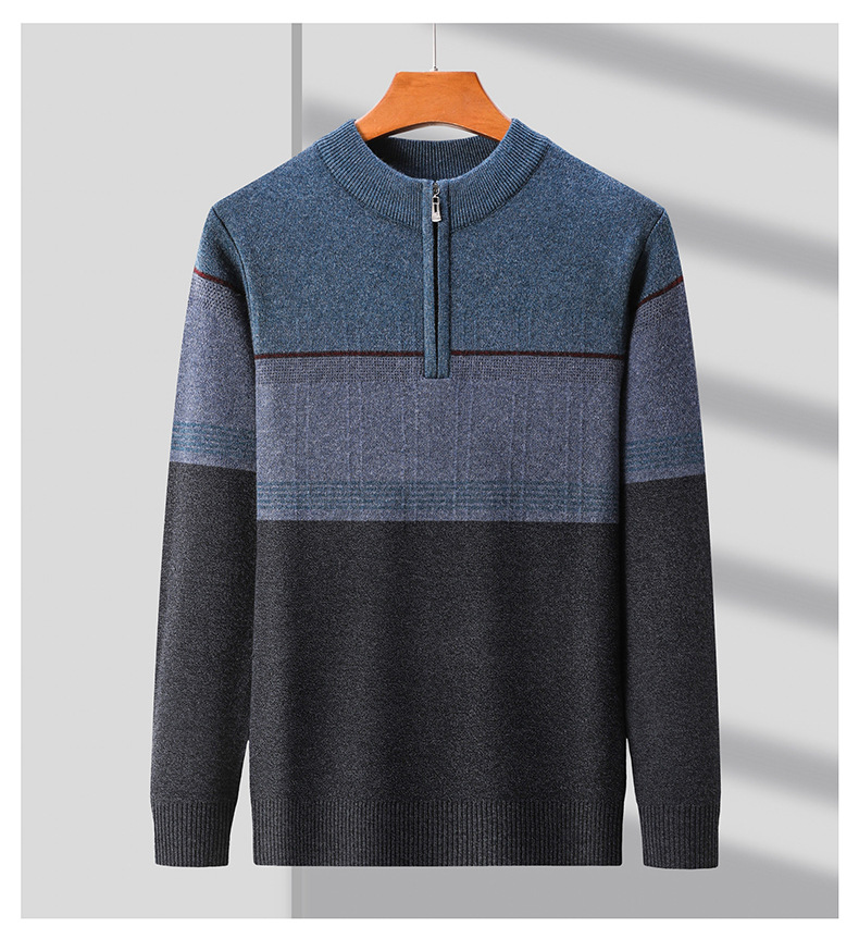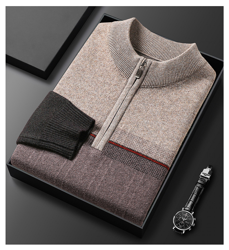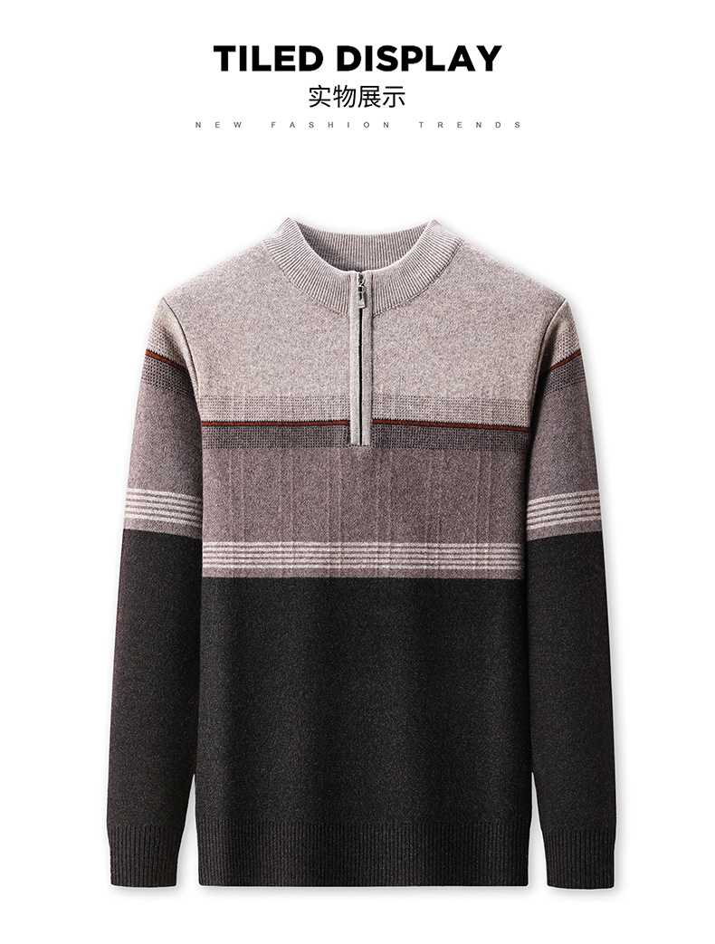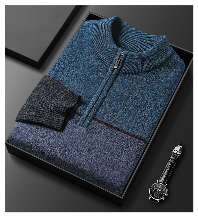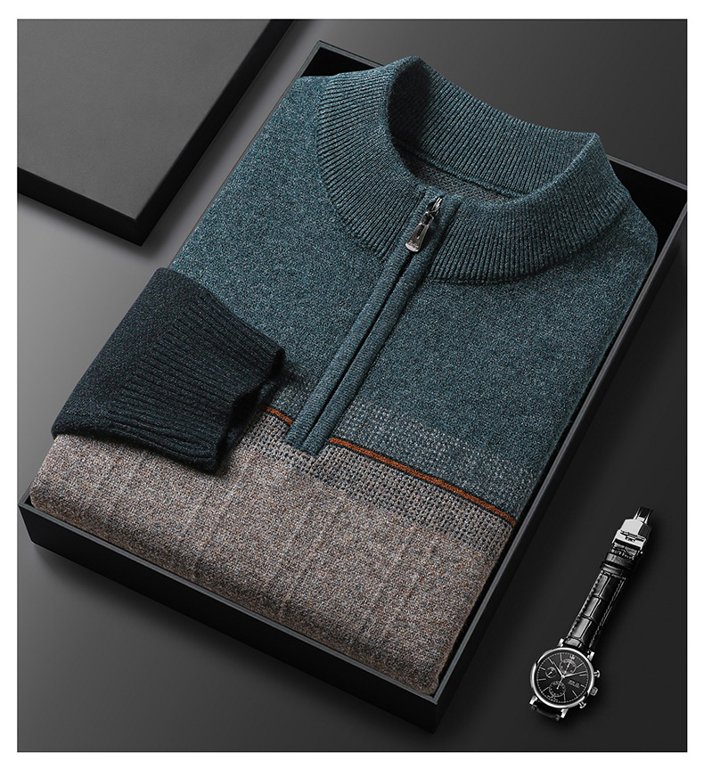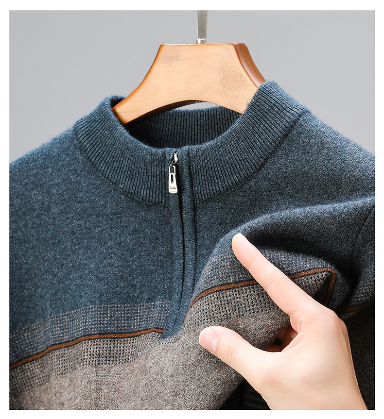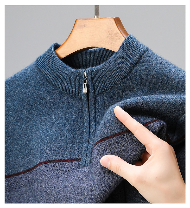 국경 간 가을 겨울 지퍼 칼라 니트웨어 남성 두꺼운 긴팔 중년 남성 하프 터틀넥 스웨터 아빠 남성 의류스토어 가기