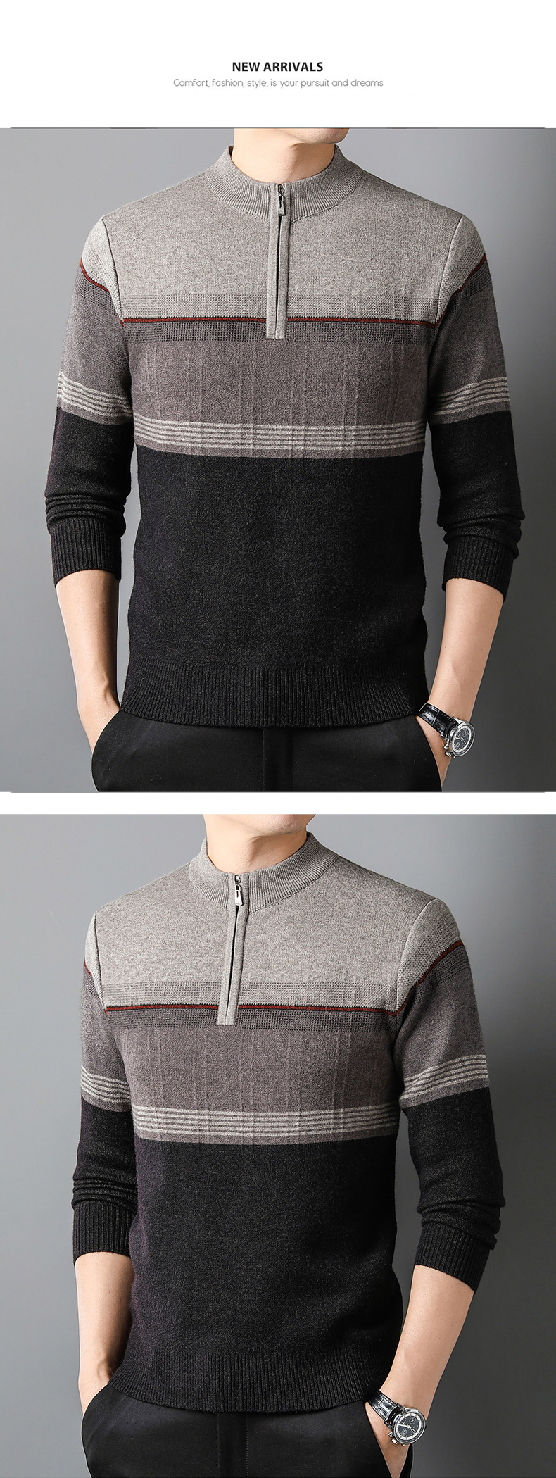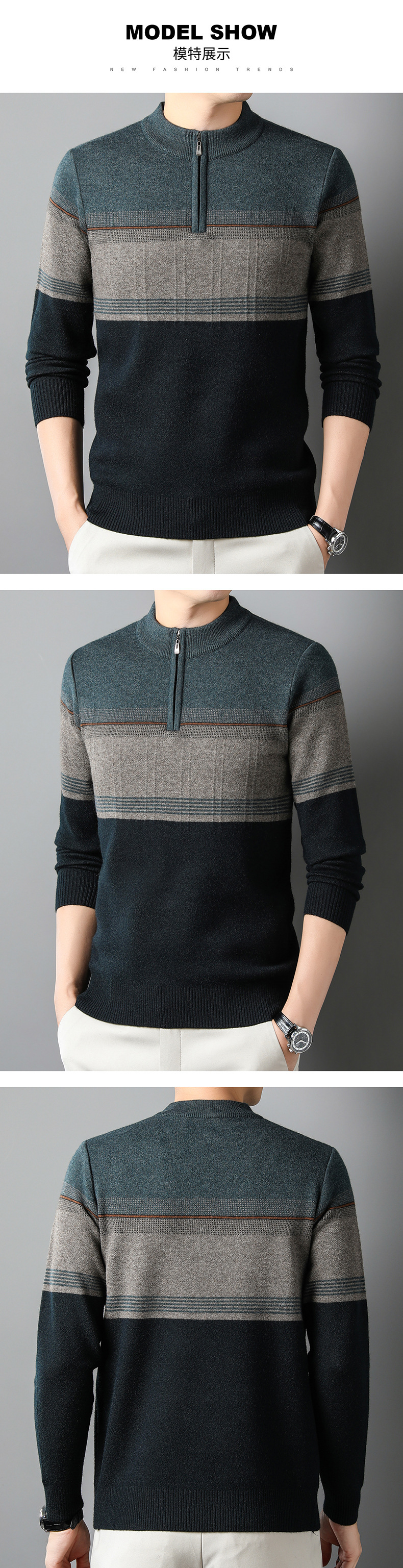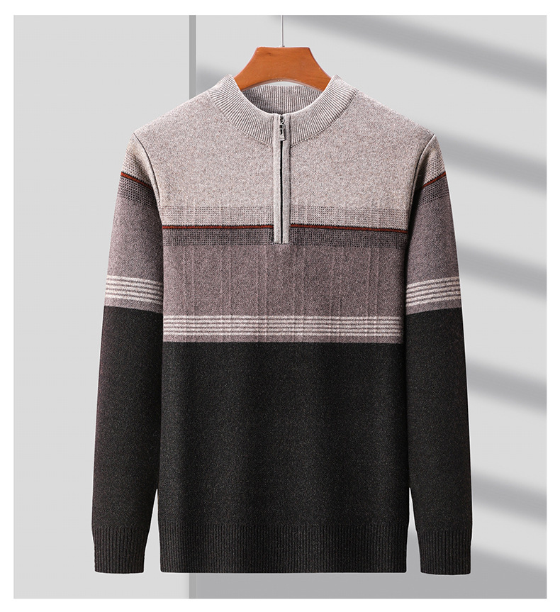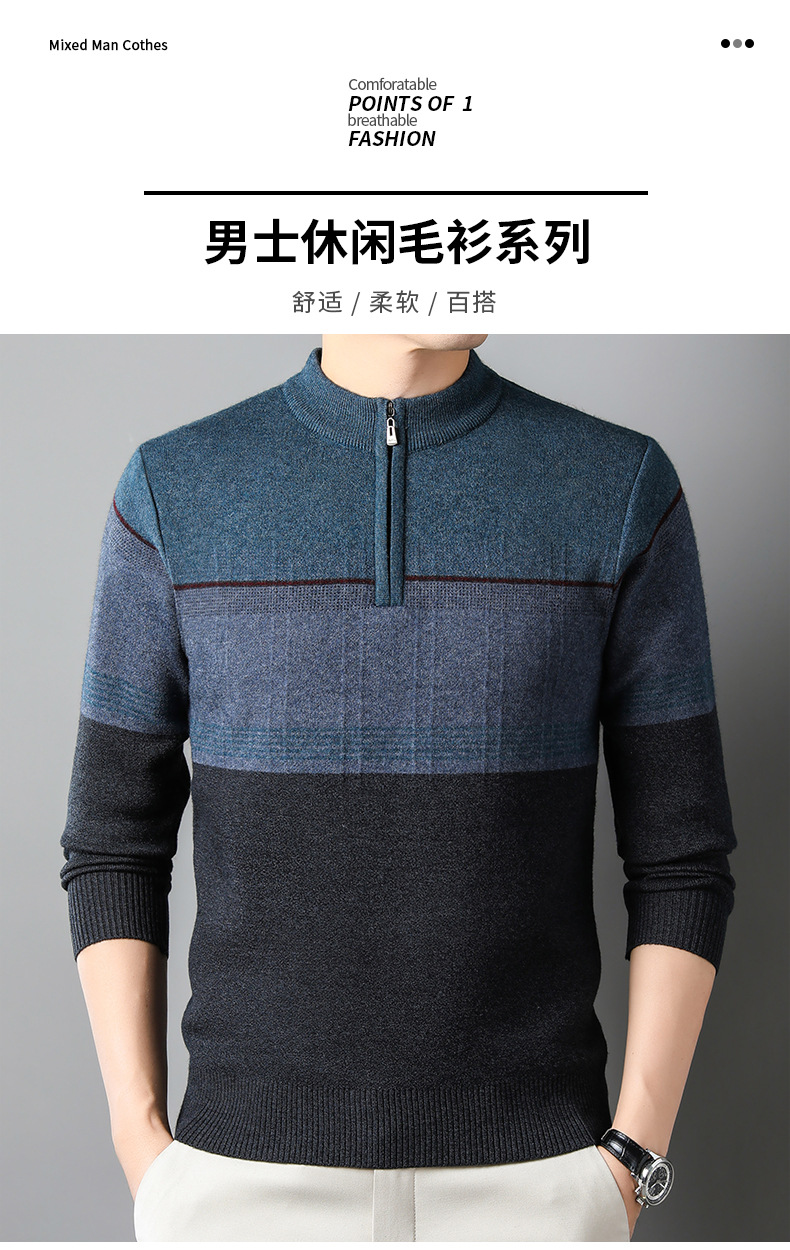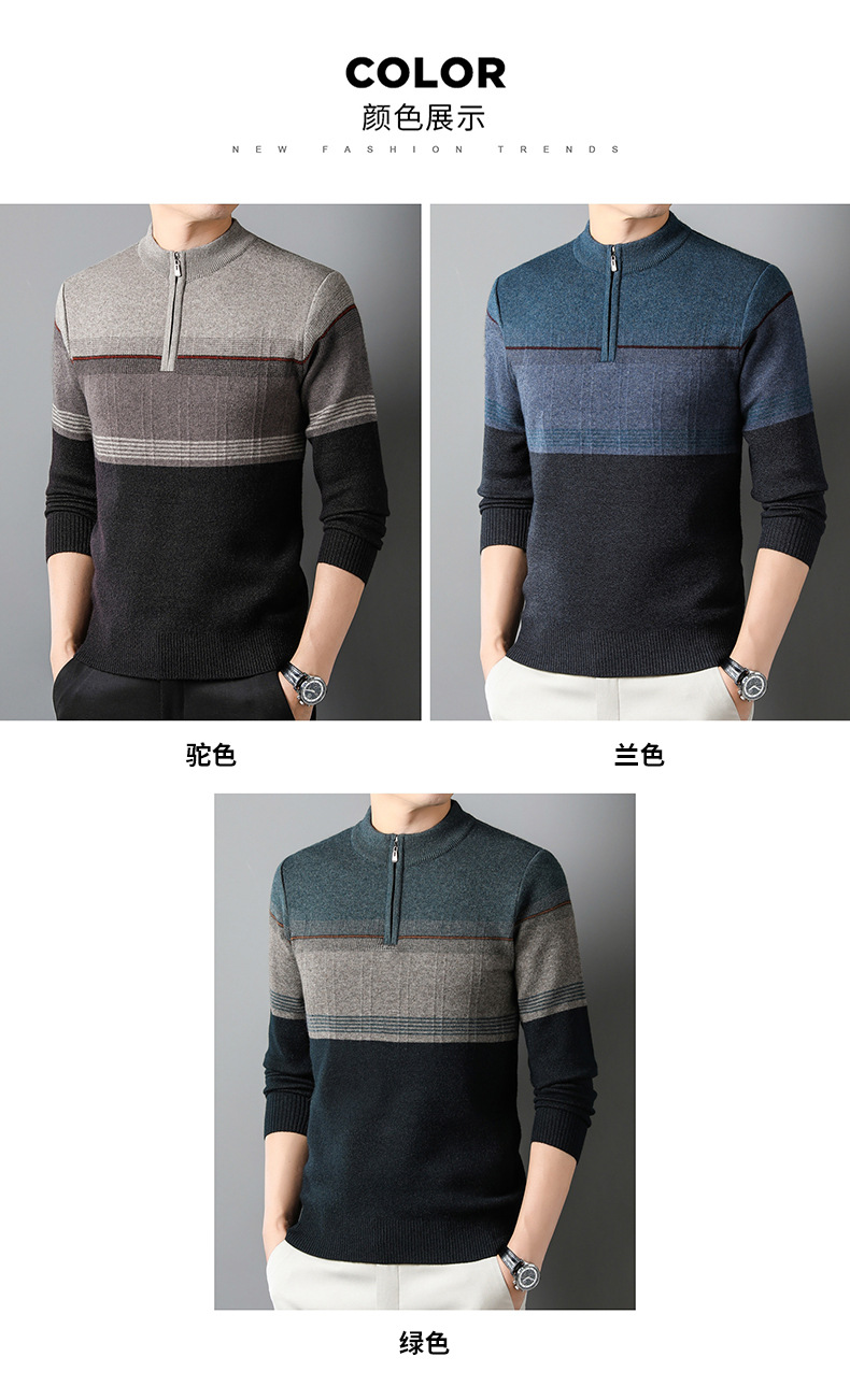 국경 간 가을 겨울 지퍼 칼라 니트웨어 남성 두꺼운 긴팔 중년 남성 하프 터틀넥 스웨터 아빠 남성 의류스토어 가기