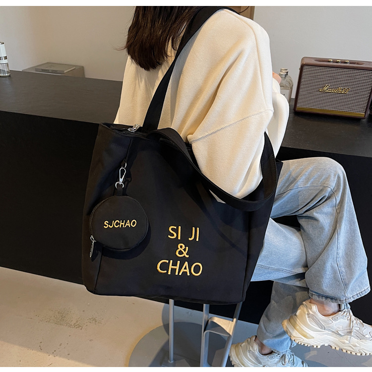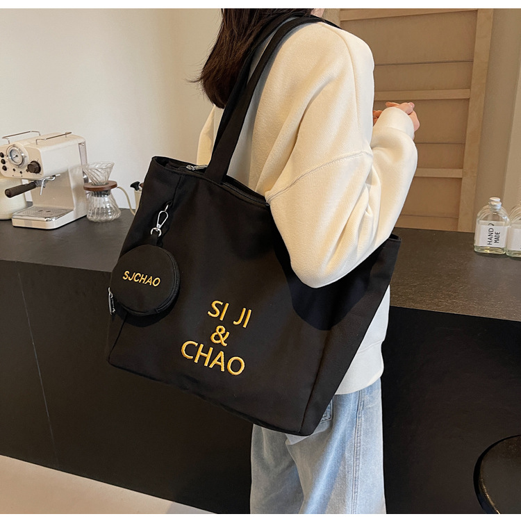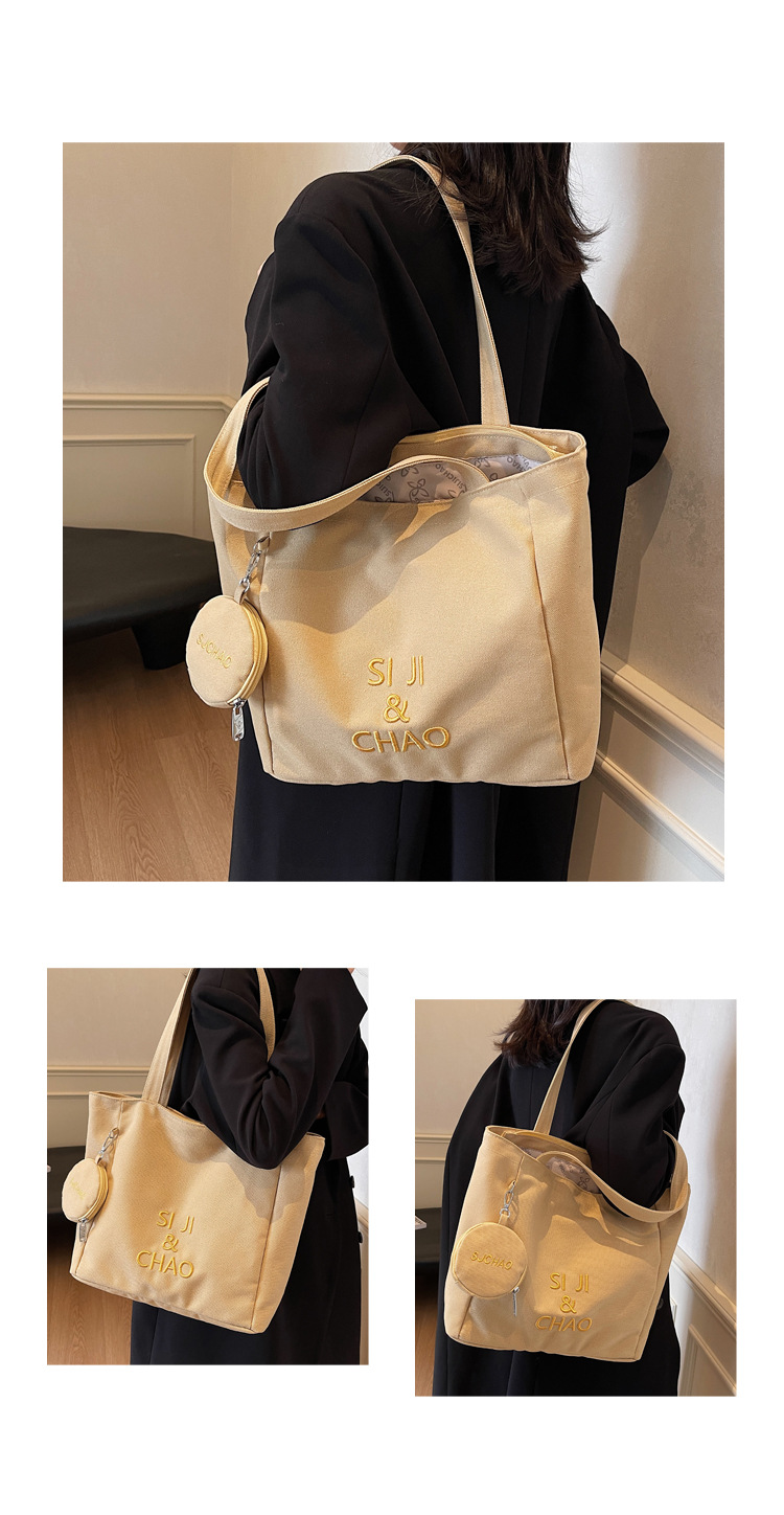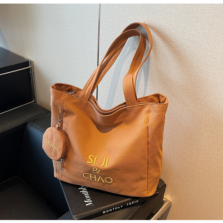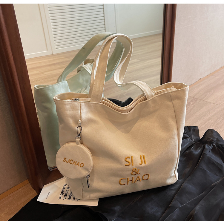 일본 스타일 간단한 대용량 통근 캔버스 가방 2024 새로운 가을과 겨울 토트 가방 틈새 디자인 올 매치 토트 백스토어 가기