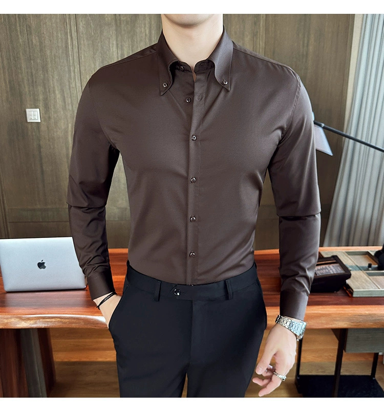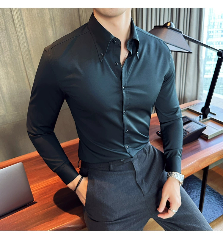 프랑스 칼라 화이트 셔츠 남성 긴 소매 봄과 가을 비즈니스 레저 연회 새로운 고급 흰색 셔츠 남성스토어 가기