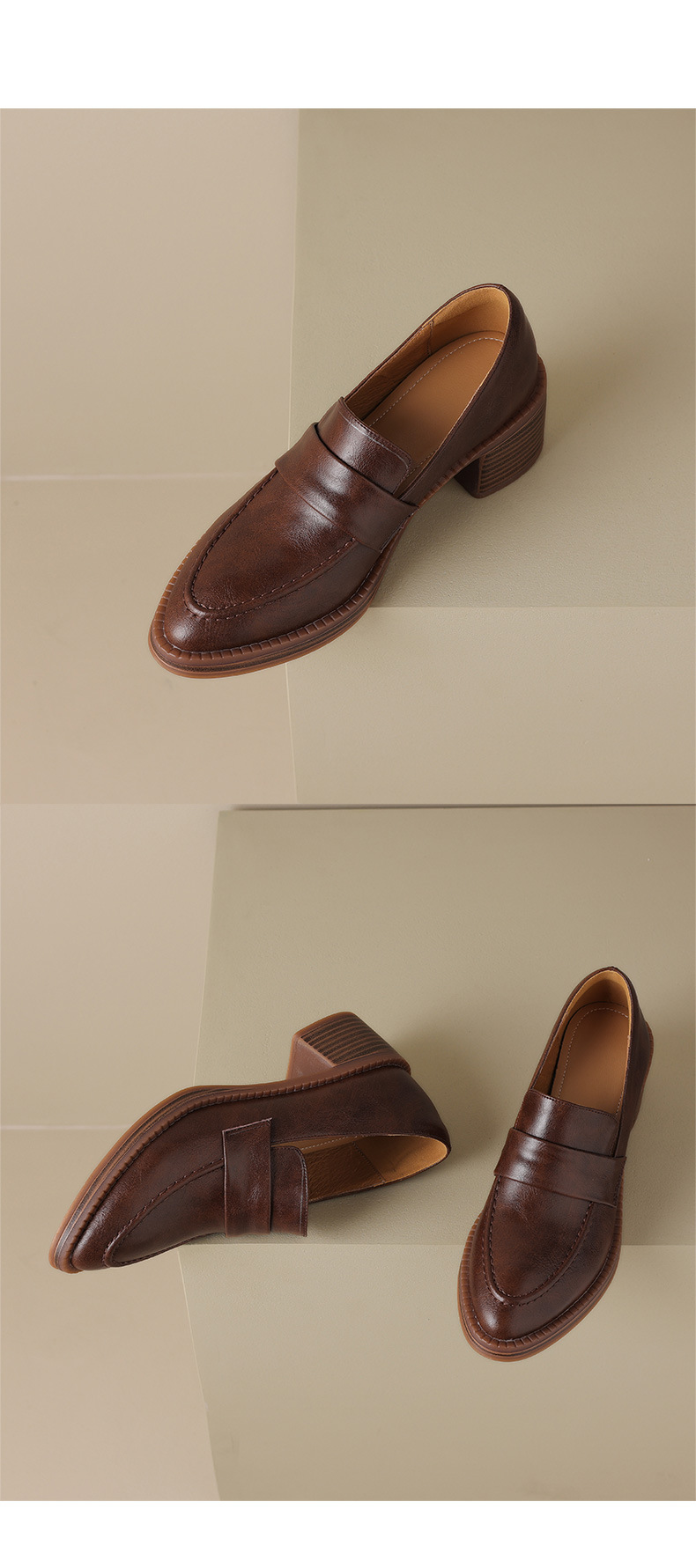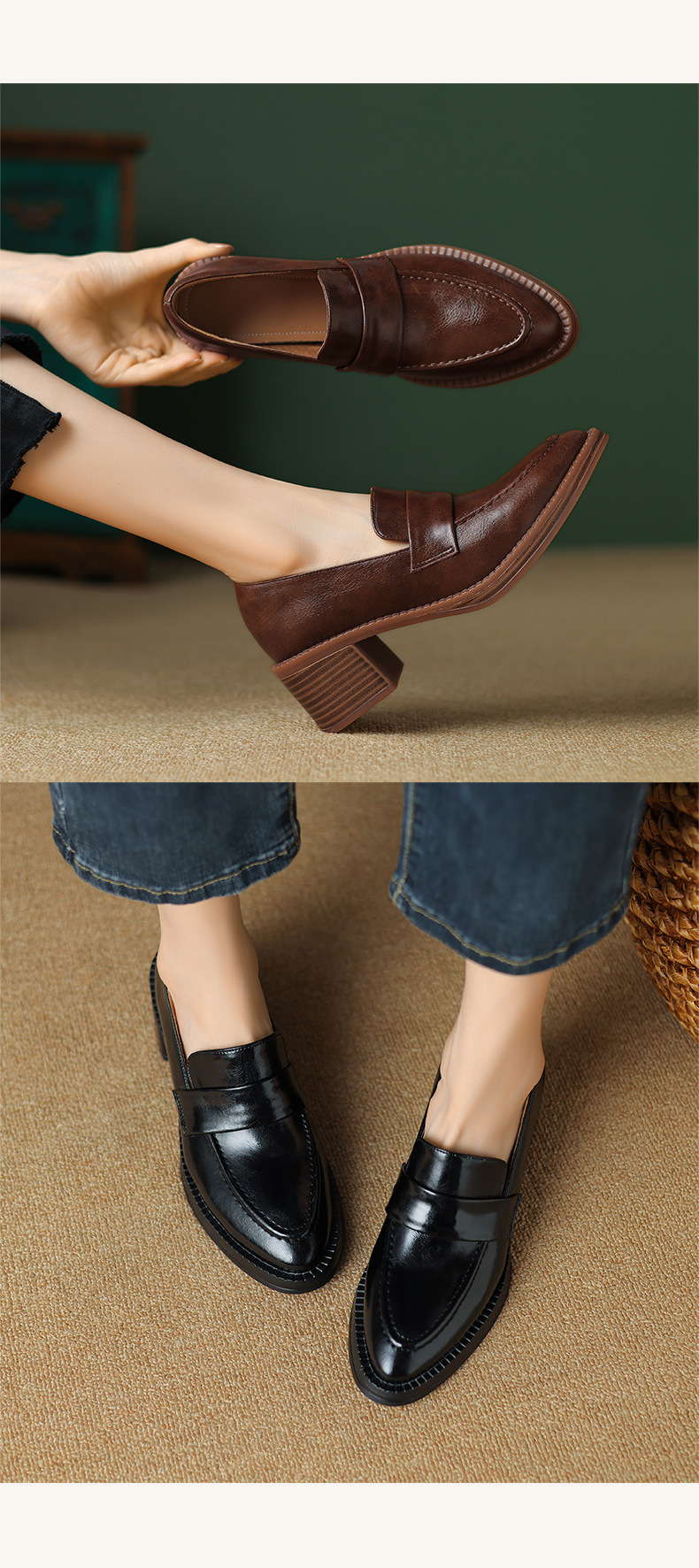 레트로 로퍼 2025 가을 신작 여성 신발 뾰족한 발가락 두꺼운 굽 중간 굽 작은 가죽 신발 로우 탑 신발 여성용 깊은 입 싱글 신발스토어 가기