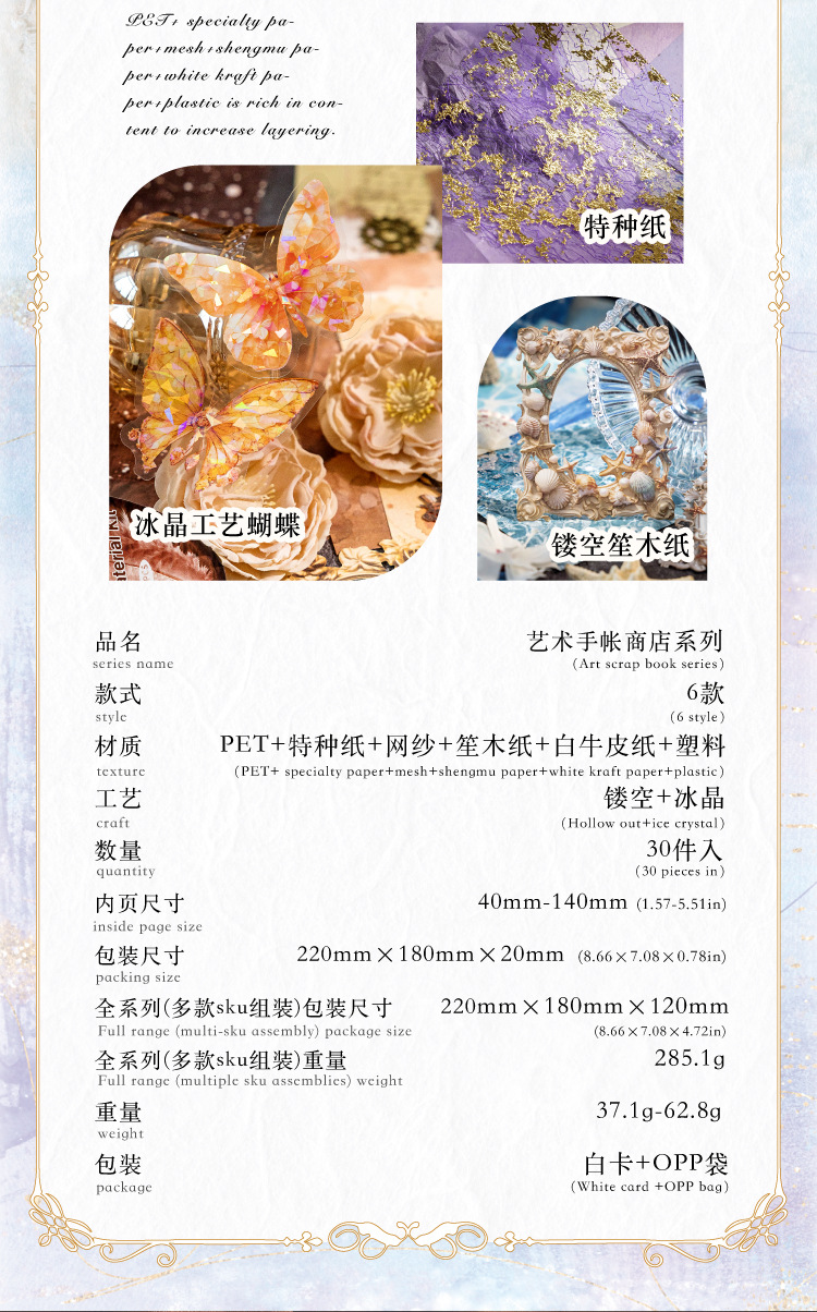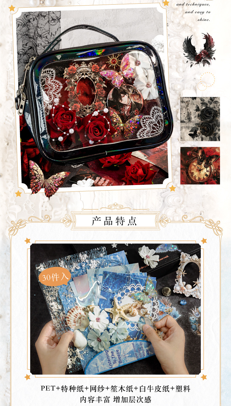모 모 혼합 소재 소재 소재 패키지 아트 손 계정 상점 시리즈 30 복고풍 손 계정 장식 6스토어 가기