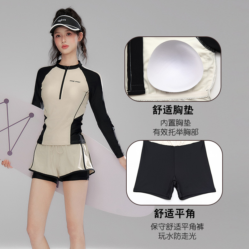 Sanqi 분할 수영복 여성 보수적 인 2024 새로운 수영장 특별 플러스 사이즈 긴 소매 선 스크린 스포츠 수영 세트