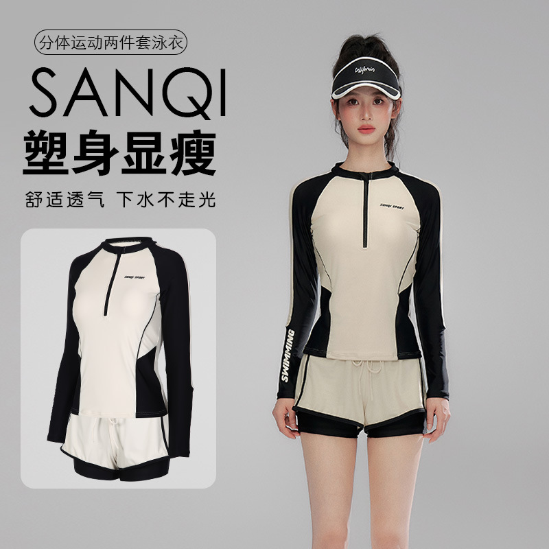 Sanqi 분할 수영복 여성 보수적 인 2024 새로운 수영장 특별 플러스 사이즈 긴 소매 선 스크린 스포츠 수영 세트스토어 가기