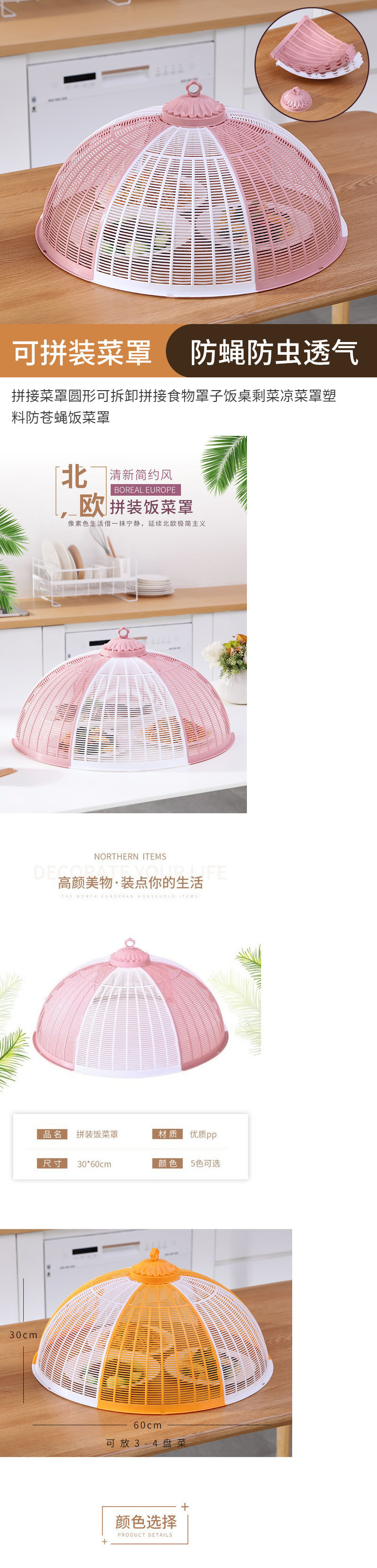 플라스틱 식사 커버 여름 커버 야채 커버 비행 방지 가정용 2024 새로운 접이식 남은 음식 커버 식탁 용스토어 가기