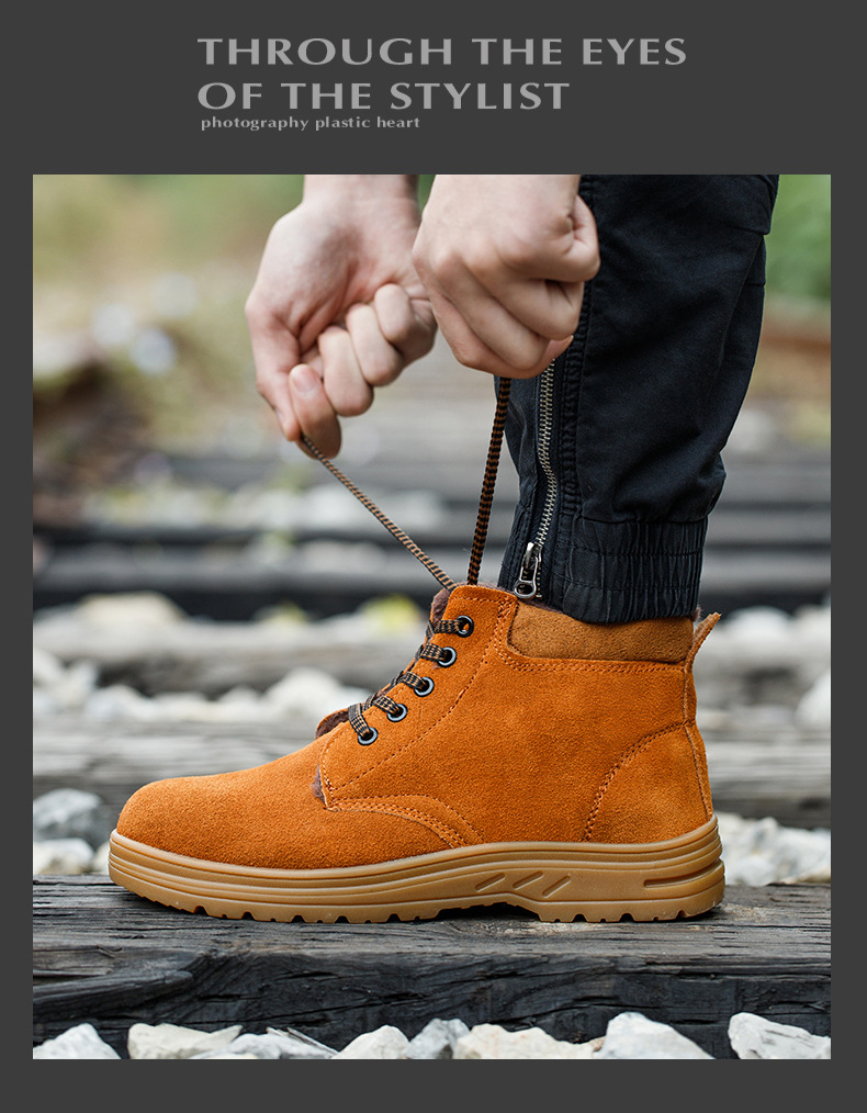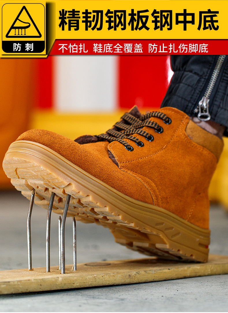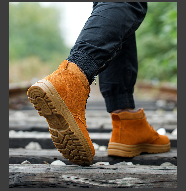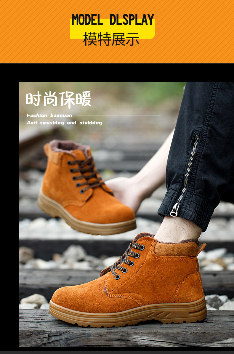노동 보호 신발 스매싱 방지 및 피어싱 방지 Cowhide 내마모성 미끄럼 방지 탈취제 기모 건설 현장을위한 따뜻한 안전 보호 작업 신발스토어 가기