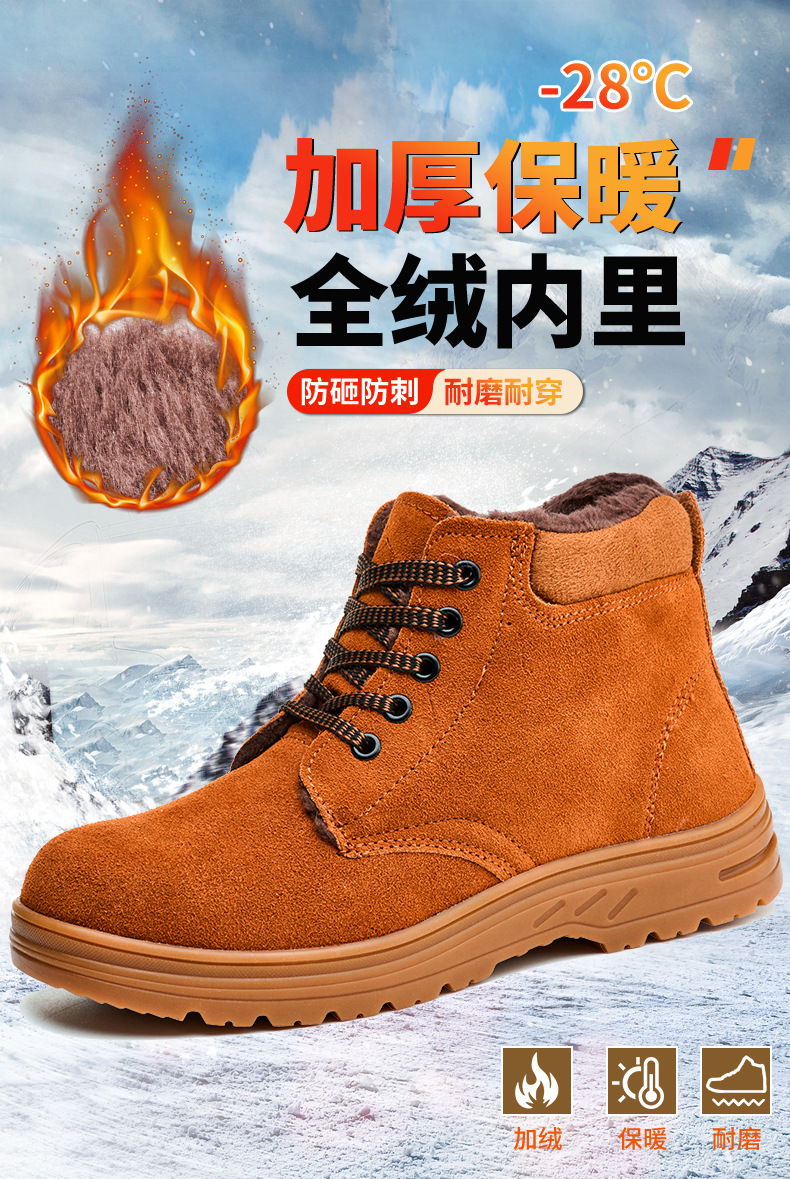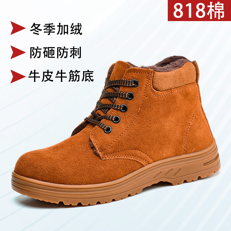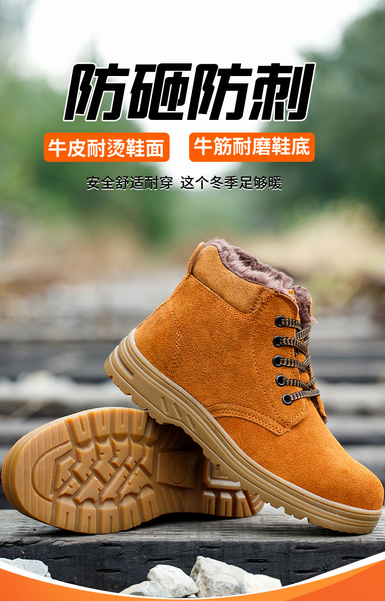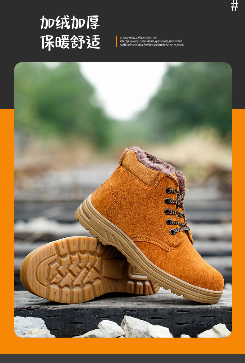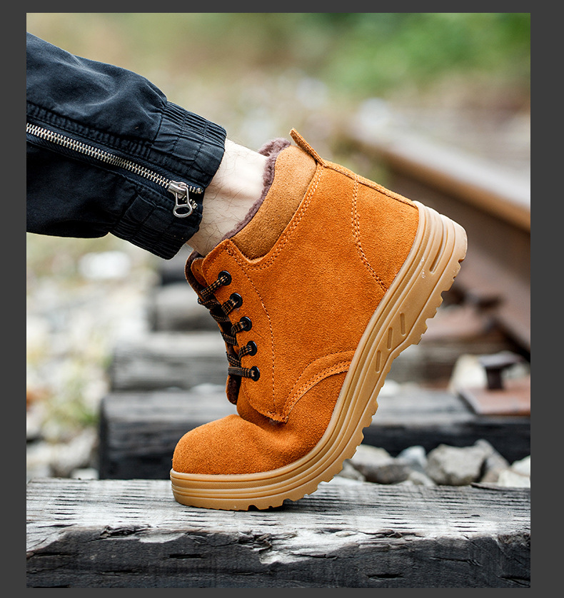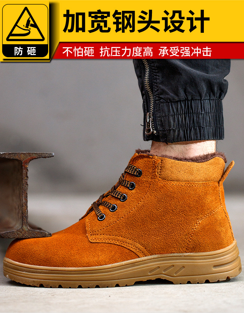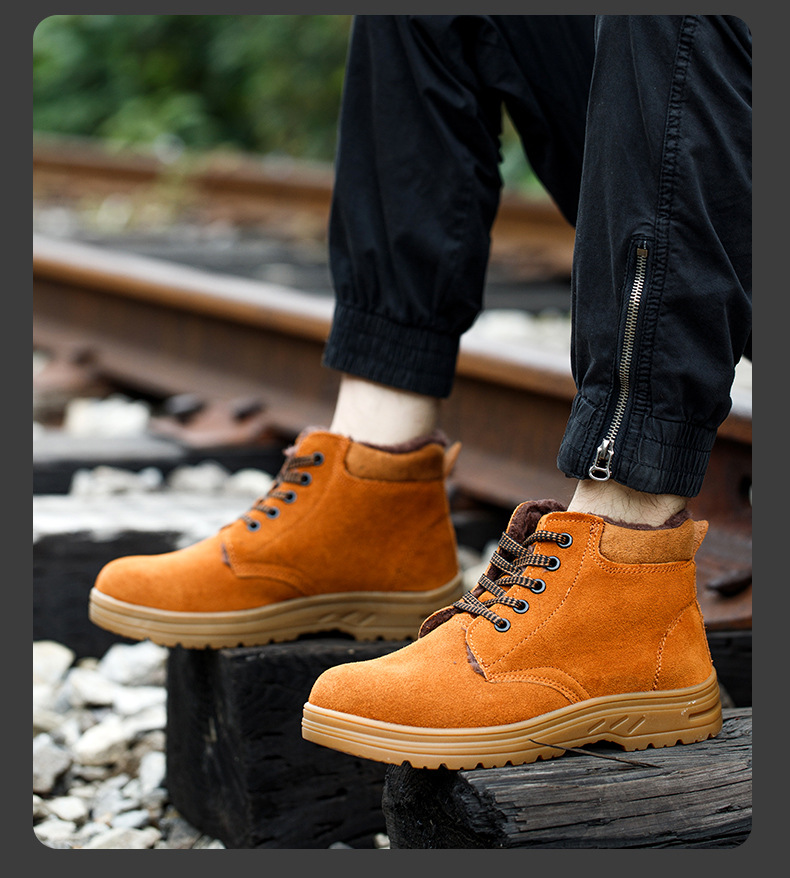 노동 보호 신발 스매싱 방지 및 피어싱 방지 Cowhide 내마모성 미끄럼 방지 탈취제 기모 건설 현장을위한 따뜻한 안전 보호 작업 신발
