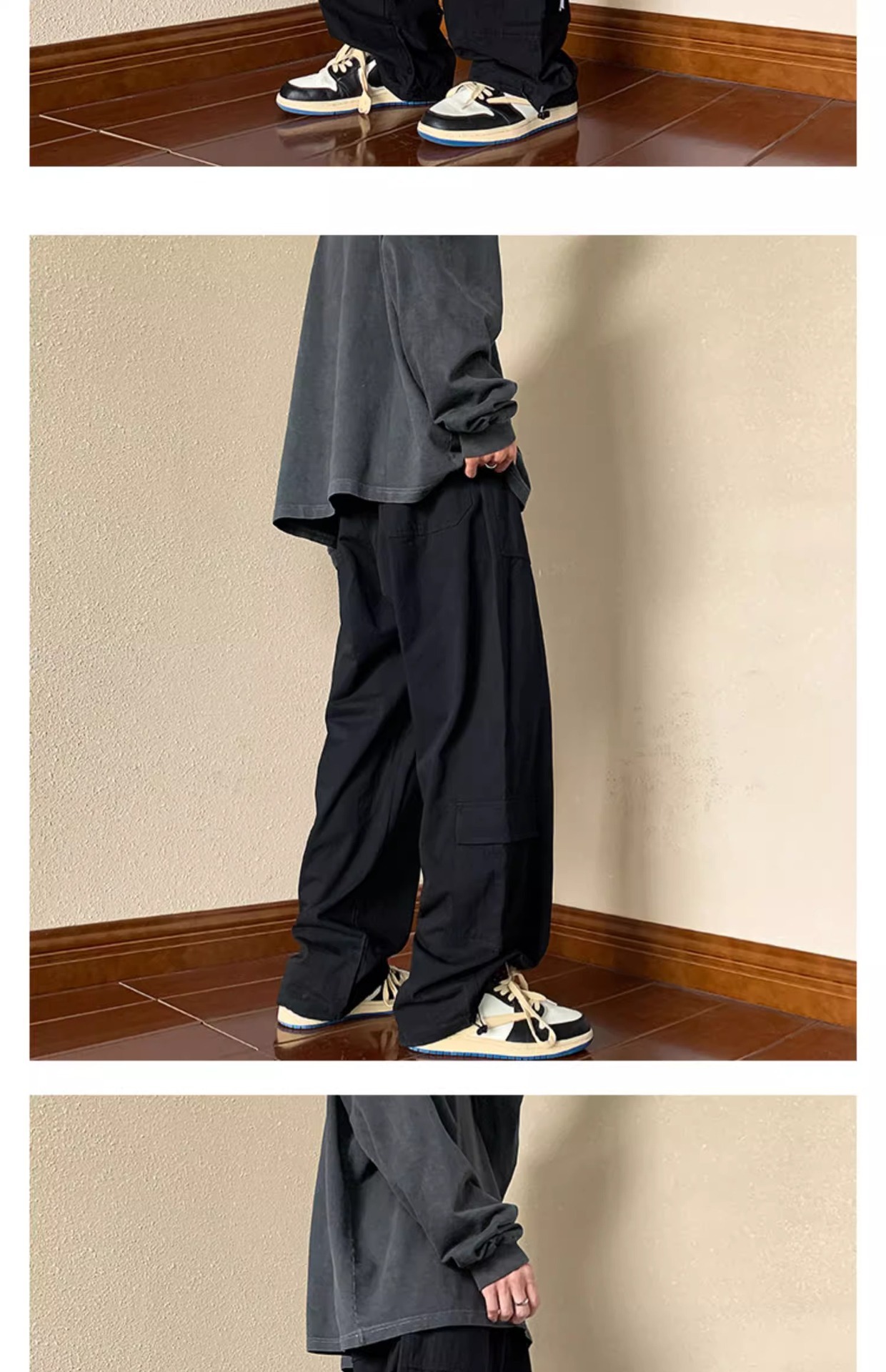 홍콩 스타일 Ins 작업복 캐주얼 바지 남성 봄과 가을 한국 스타일 유행 멀티 포켓 느슨한 바지스토어 가기