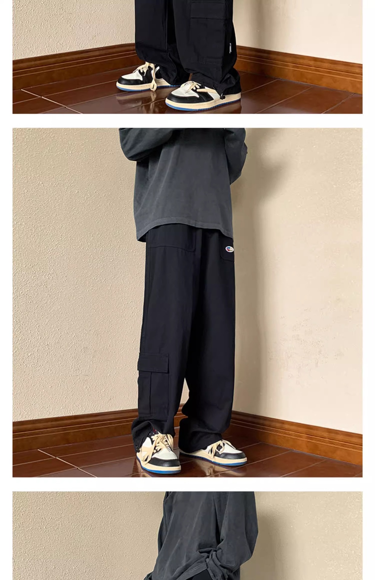 홍콩 스타일 Ins 작업복 캐주얼 바지 남성 봄과 가을 한국 스타일 유행 멀티 포켓 느슨한 바지