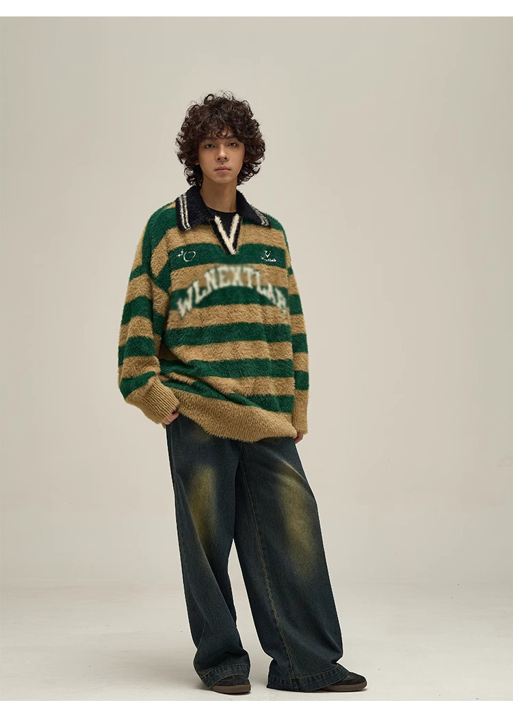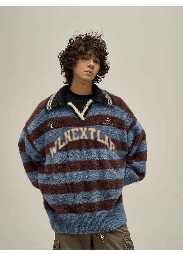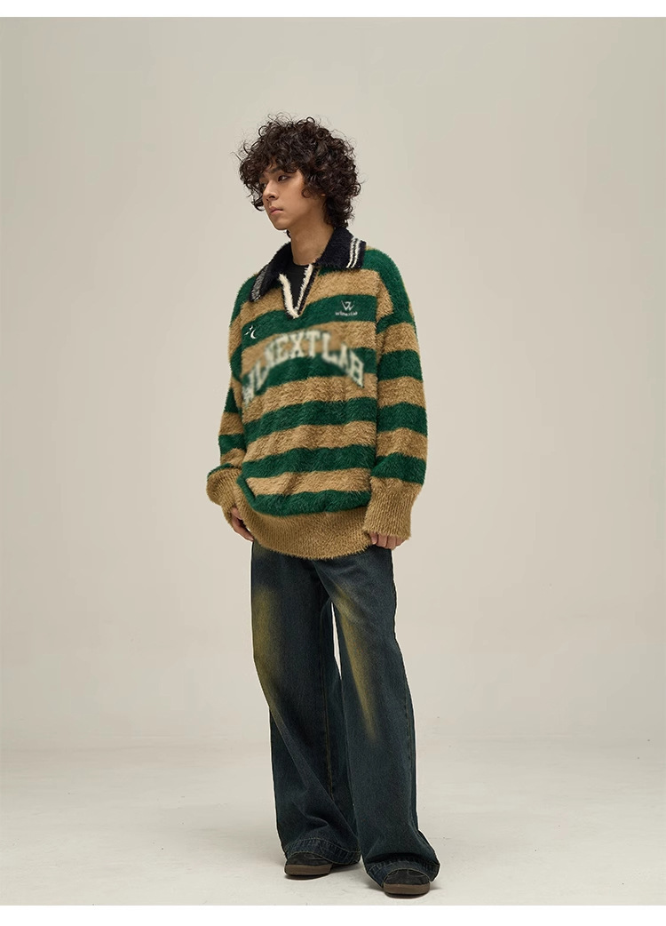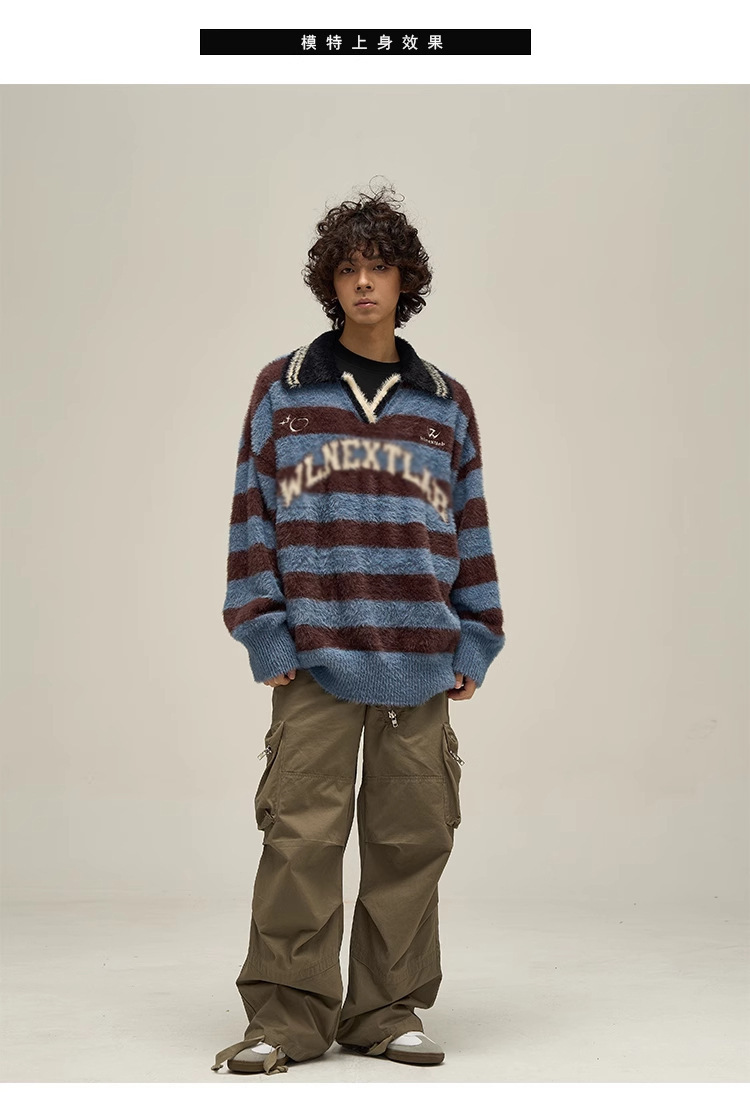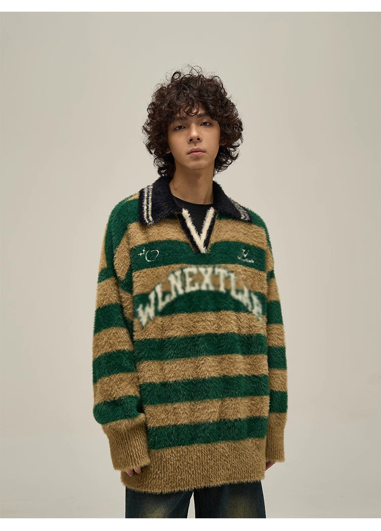 아메리칸 스타일 레트로 대학 스타일 스웨터 남자 가을 겨울 새로운 느슨한 오버 사이즈 스웨터 커플의 트렌디 브랜드 탑