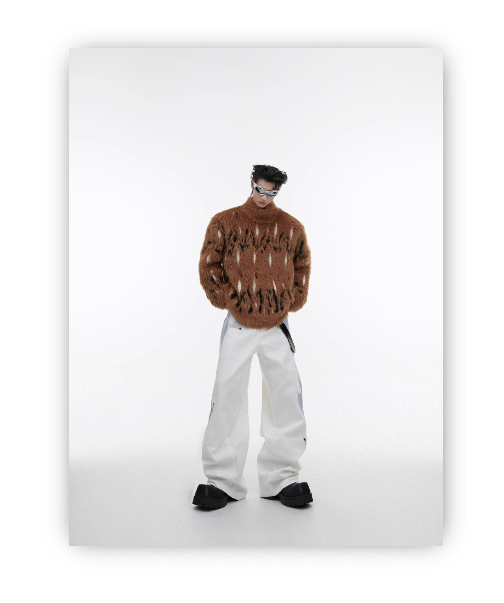 2024 가을과 겨울 새로운 틈새 분할 디자인 니트 스웨터 터틀넥 플러시 긴 소매 게으른 스웨터 탑스토어 가기