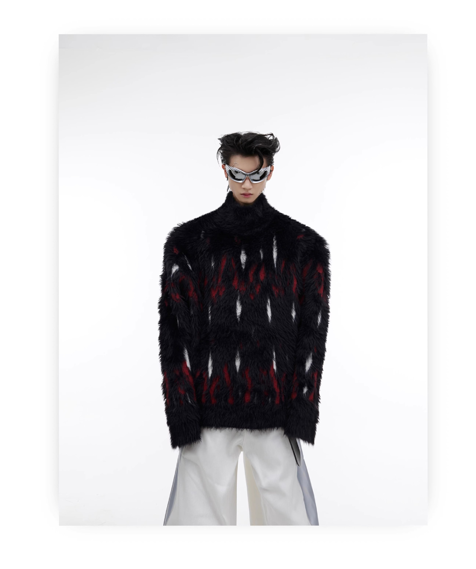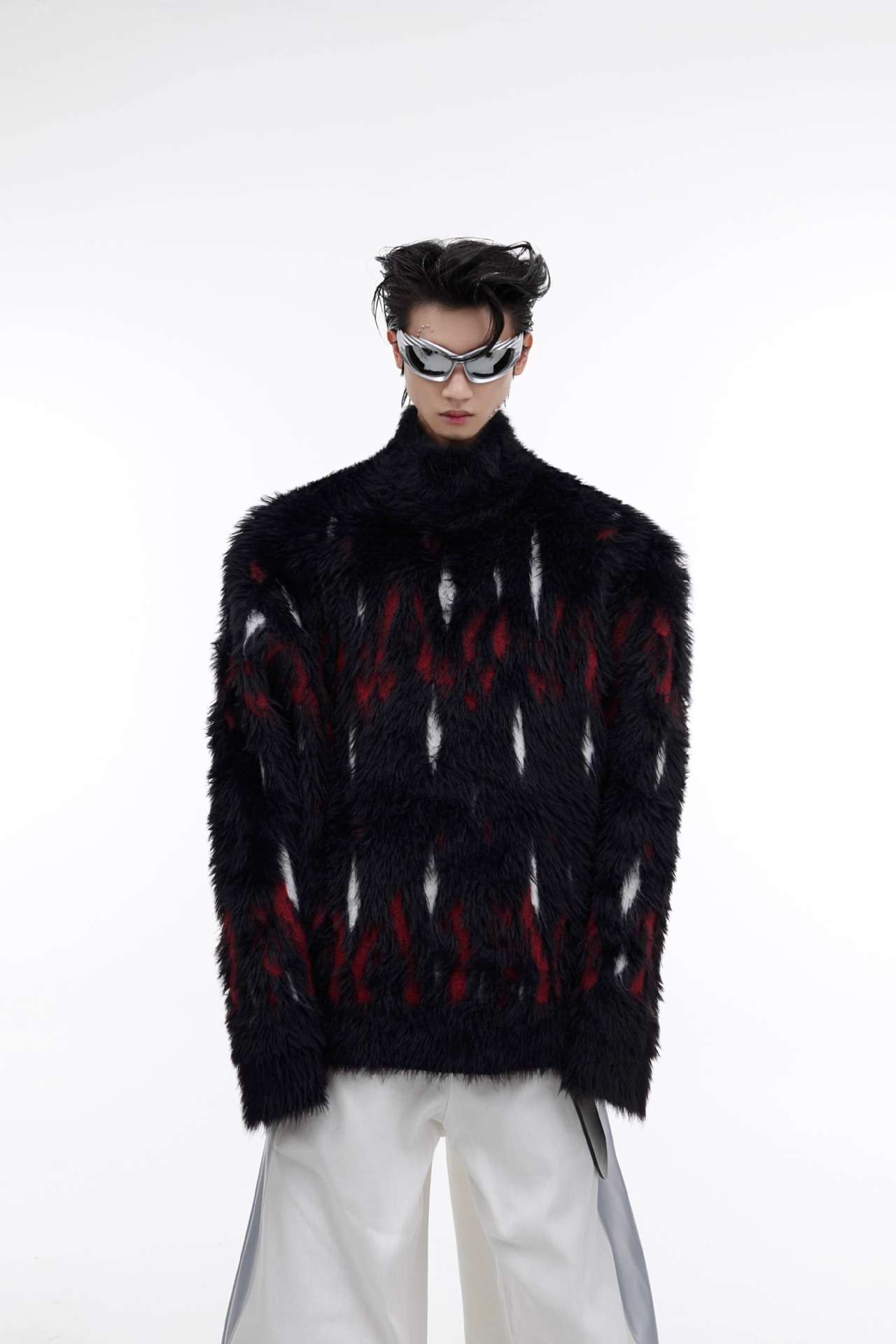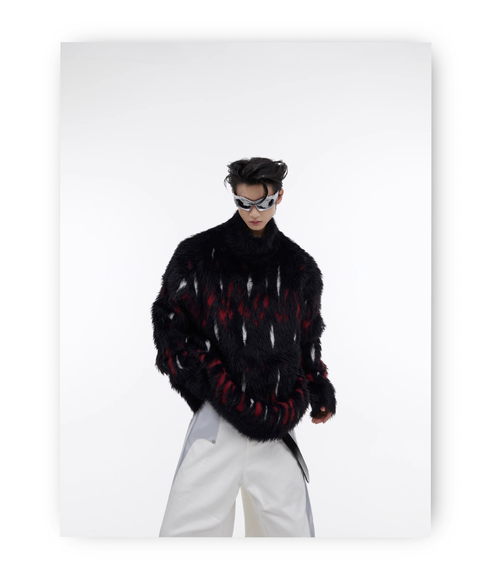 2024 가을과 겨울 새로운 틈새 분할 디자인 니트 스웨터 터틀넥 플러시 긴 소매 게으른 스웨터 탑