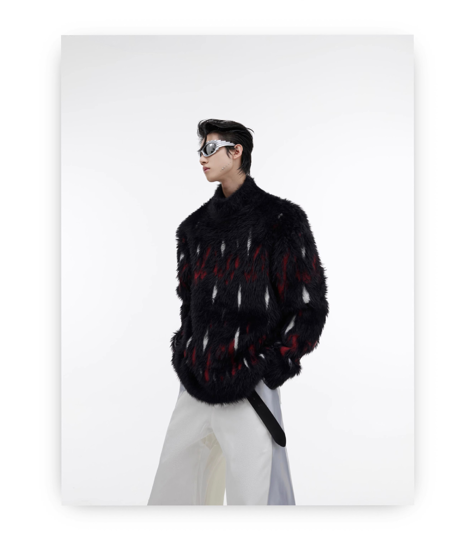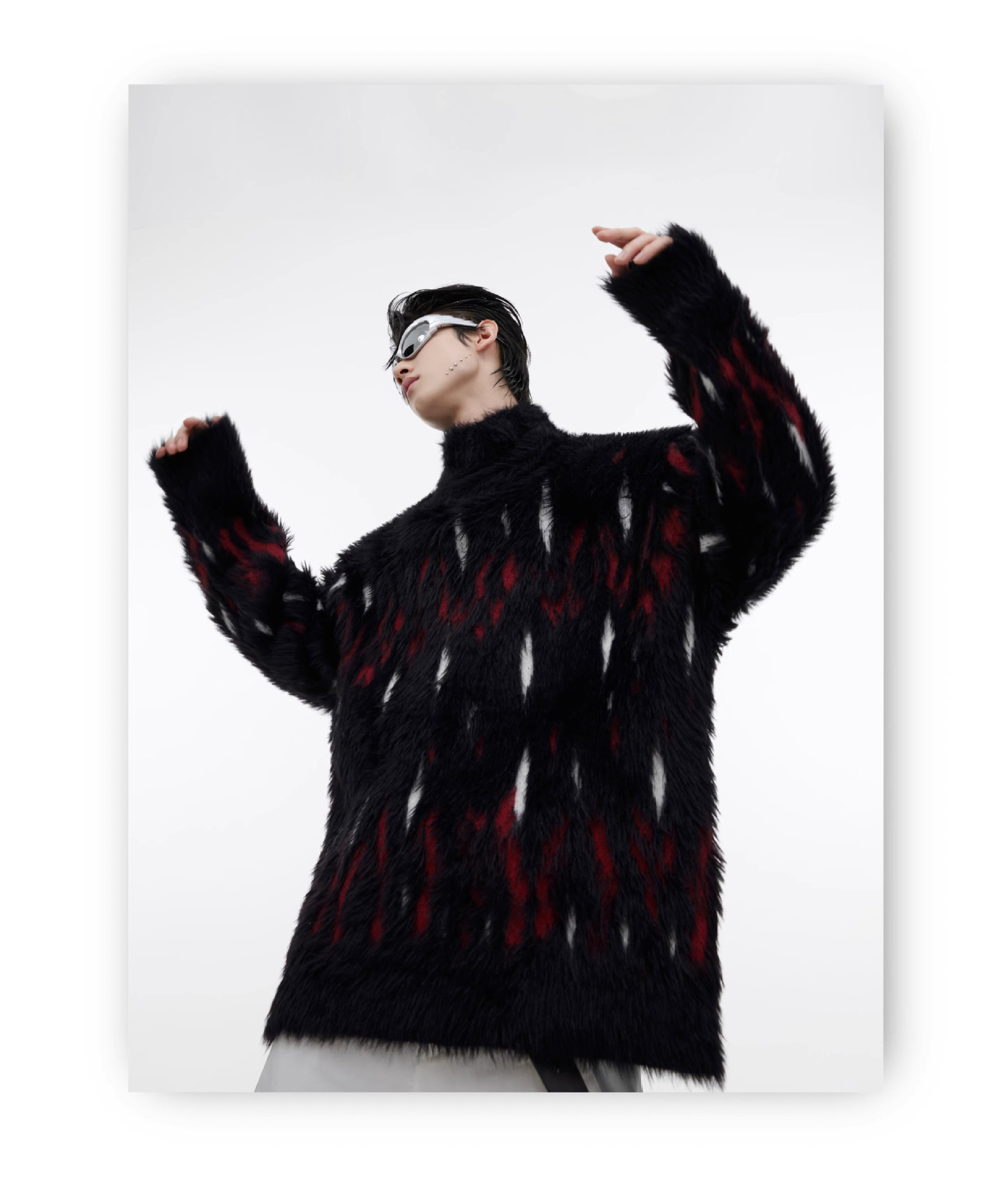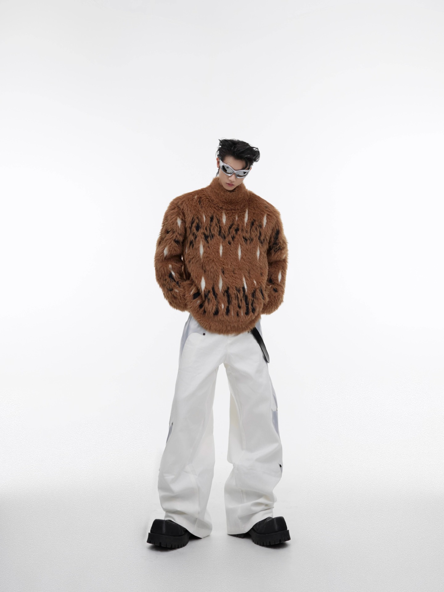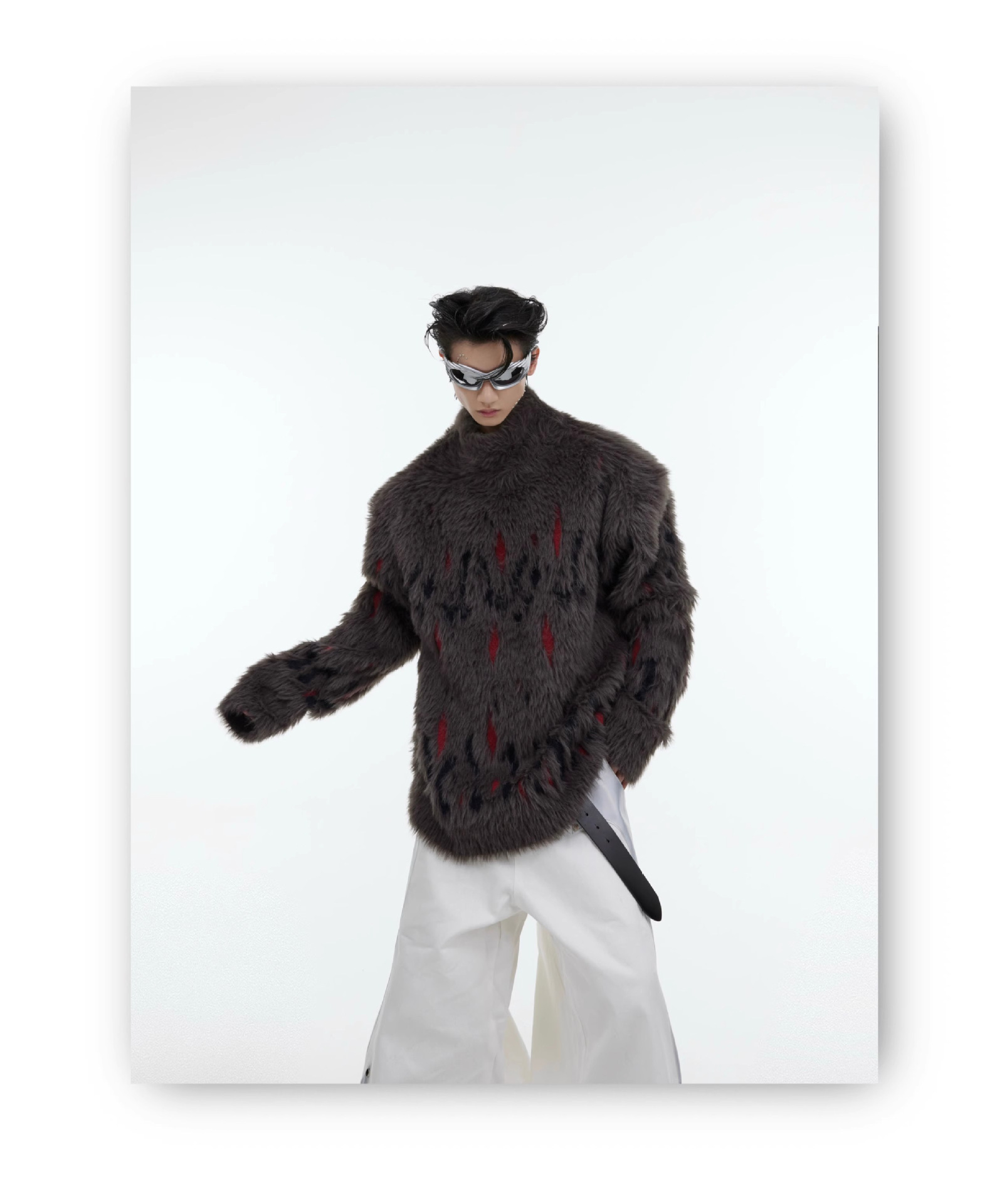 2024 가을과 겨울 새로운 틈새 분할 디자인 니트 스웨터 터틀넥 플러시 긴 소매 게으른 스웨터 탑