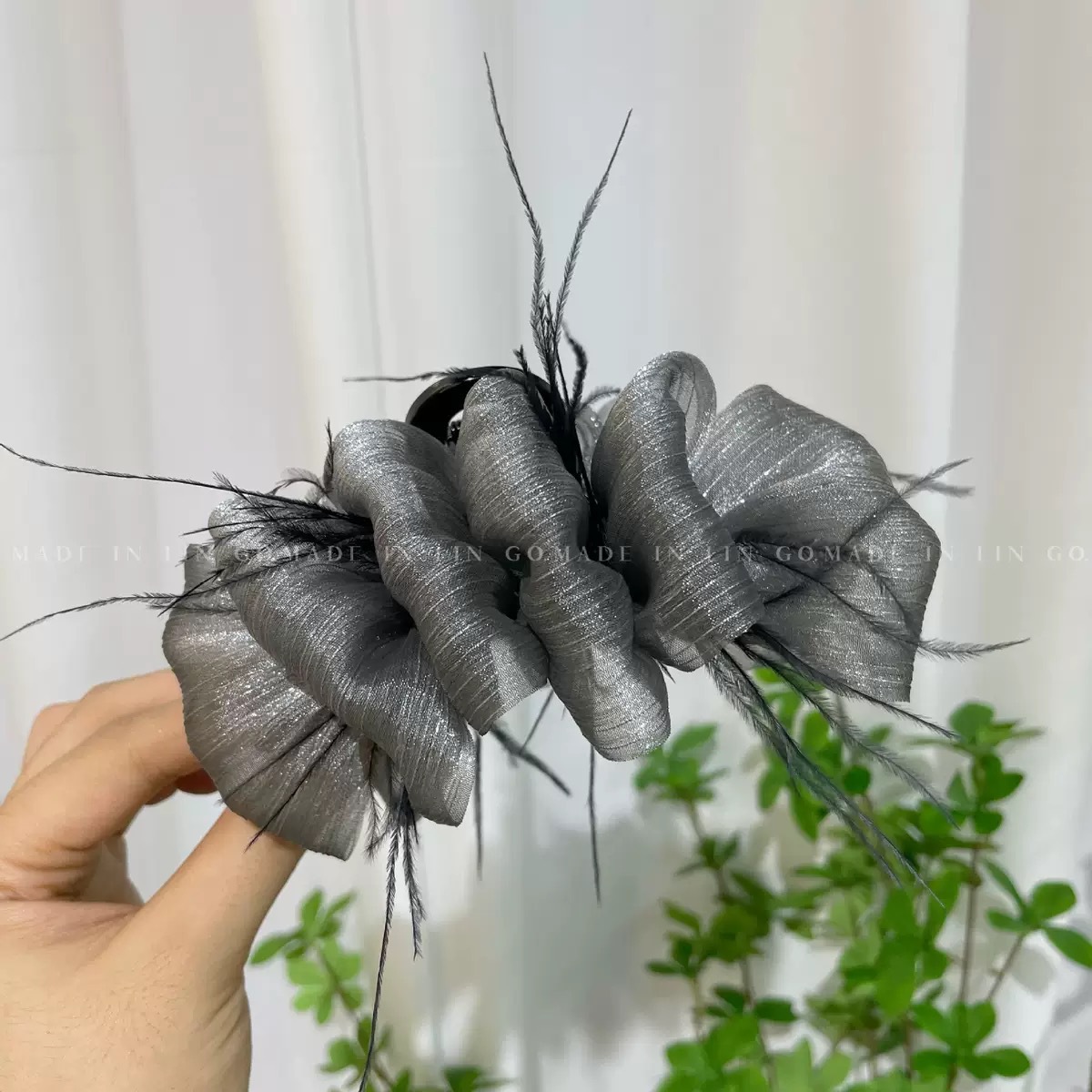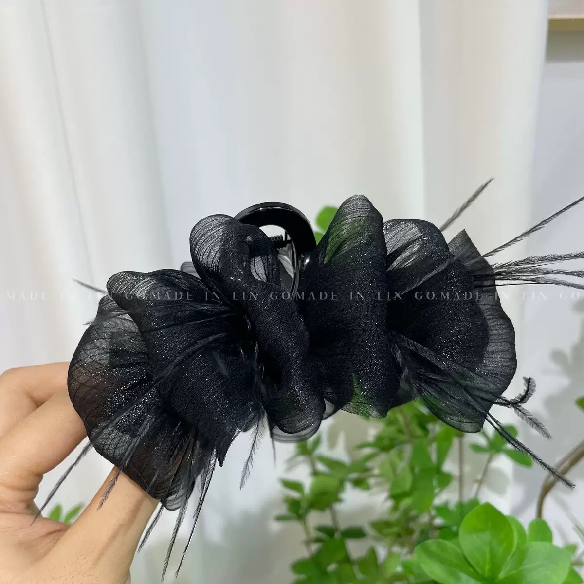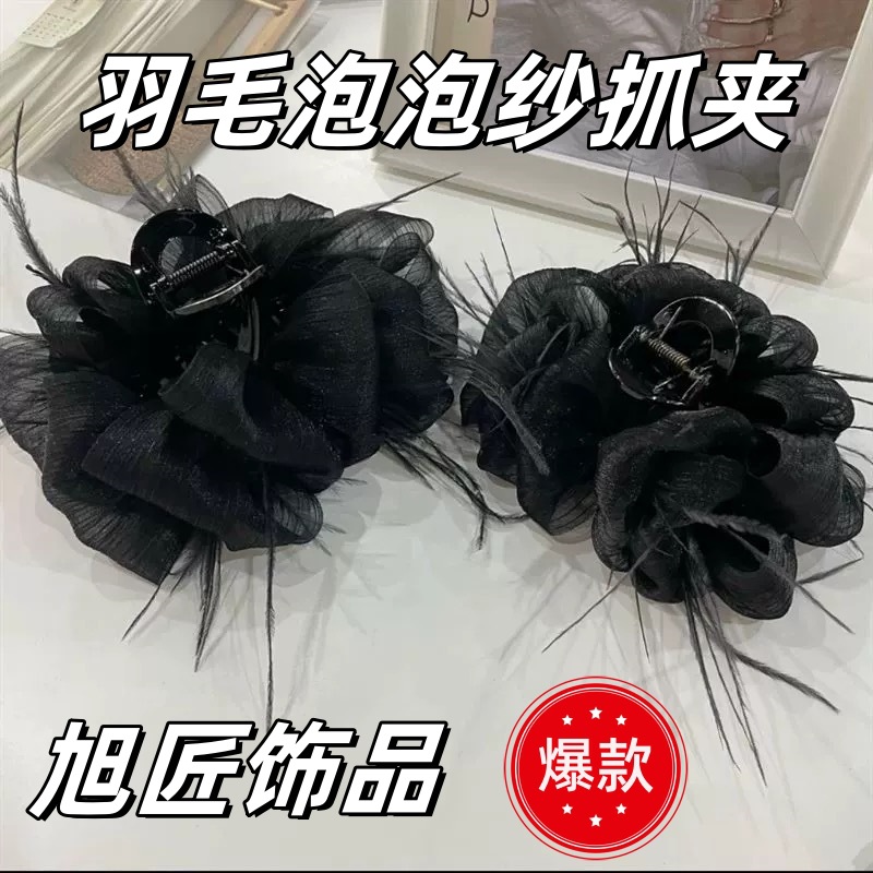양면 타조 깃털 헤어핀 여성의 꽃 머리 잡아 메쉬 블랙 버블 그랩 클립 헤어 2024 새로운 헤어 액세서리스토어 가기