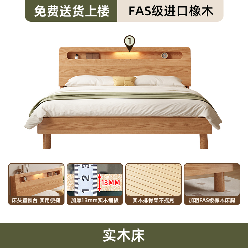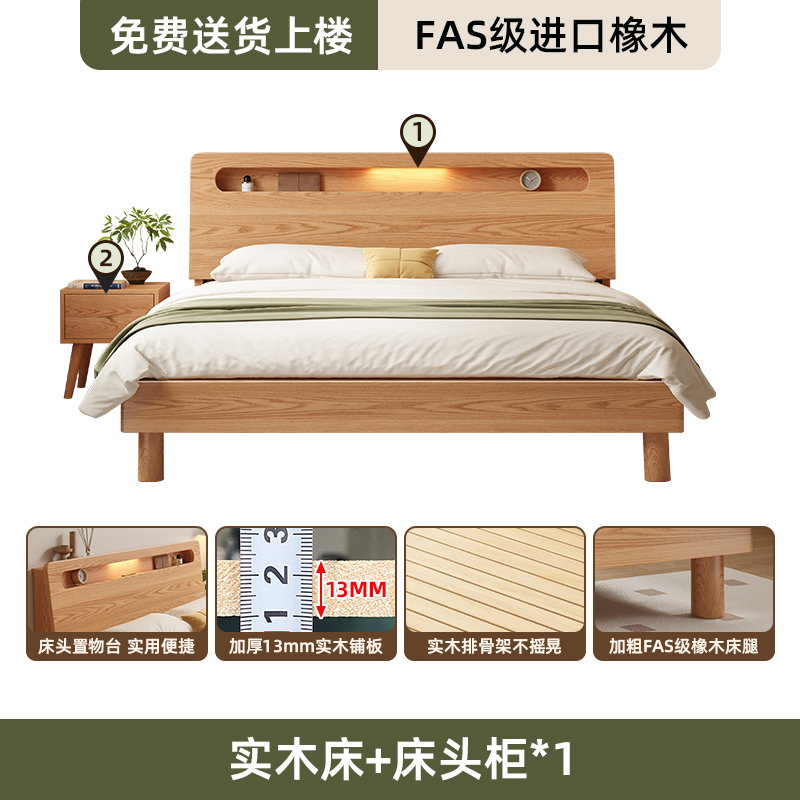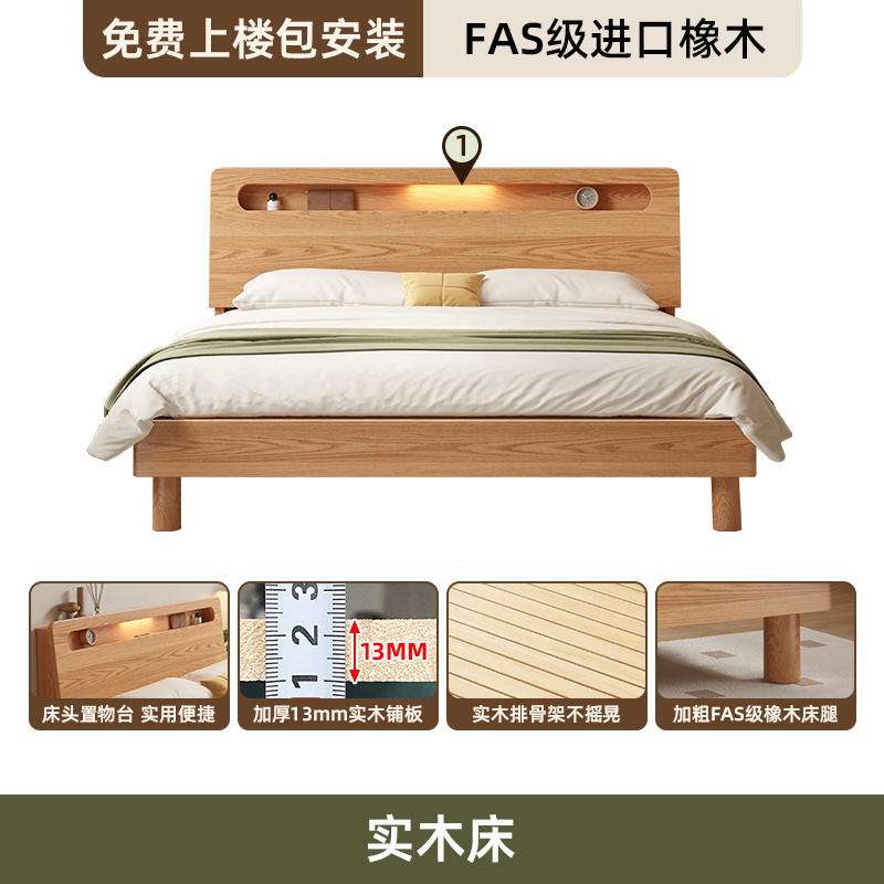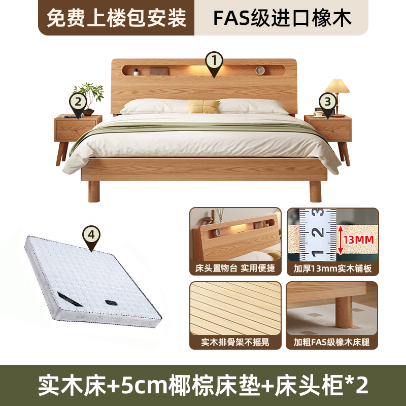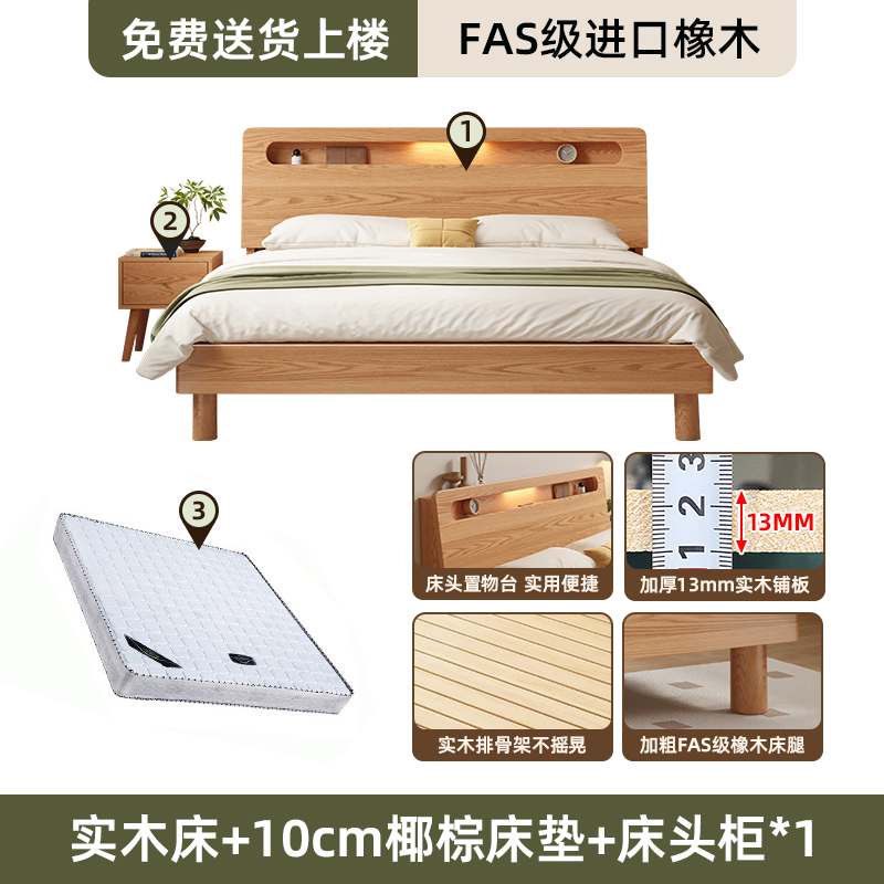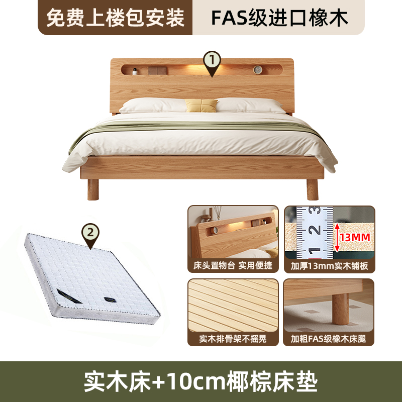 • 오크 침대 + 5cm 코코넛 야자 매트리스 + 침대 옆 탁자 * 1 [위층 패키지]