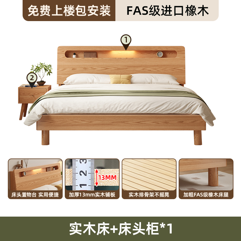 • 오크 침대 + 5cm 코코넛 야자 매트리스 + 침대 옆 탁자 * 1 [위층 패키지 + 설치]