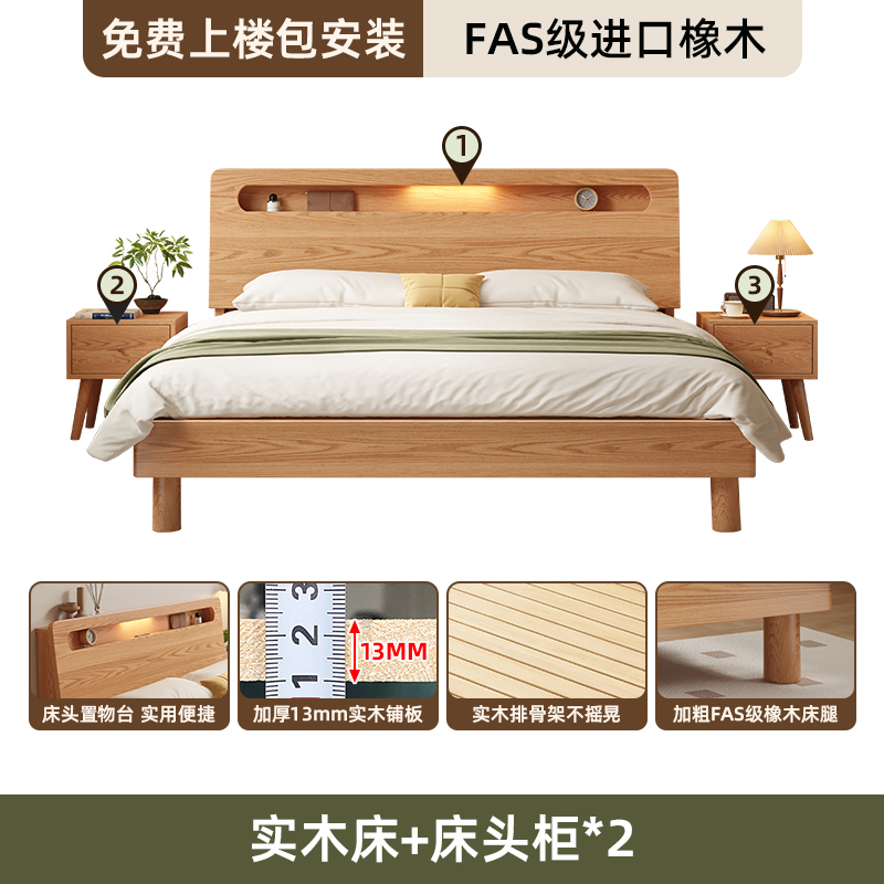 • 오크 침대 + 20cm 스프링 매트리스 + 침대협탁*2 [위층 패키지 + 설치]