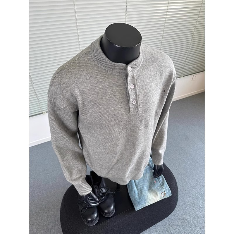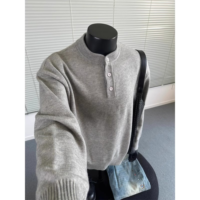 미국 헨리 칼라 스웨터 남자의 가을과 겨울 트렌디 한 십대 하이 엔드 센스 루즈 캐주얼 게으른 스타일 스웨터스토어 가기