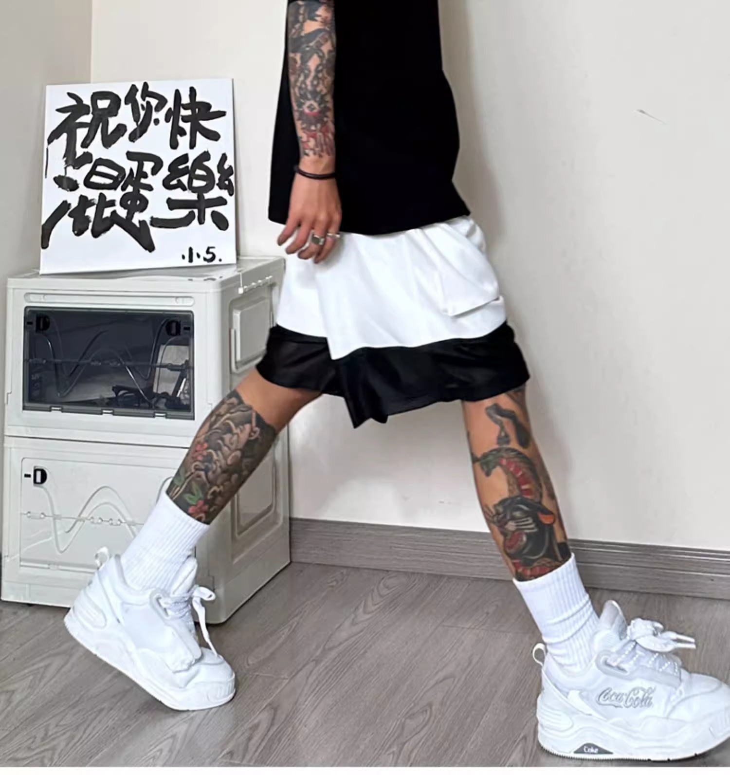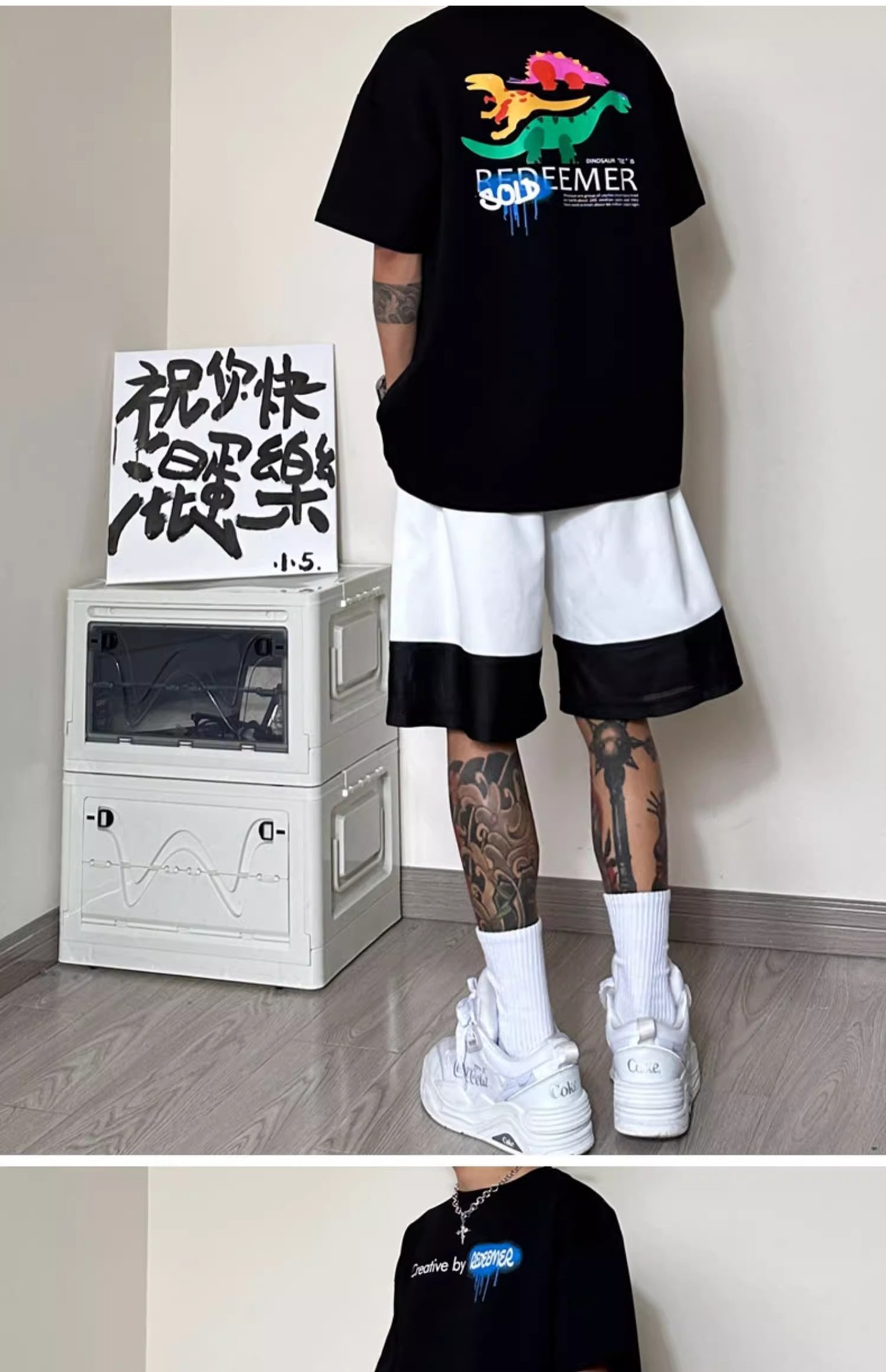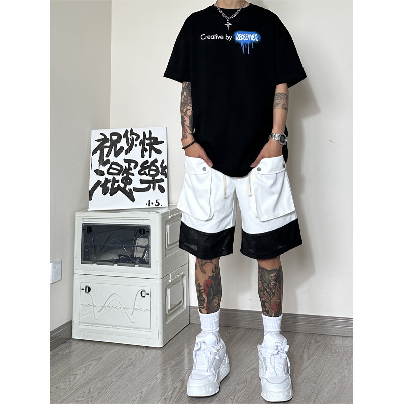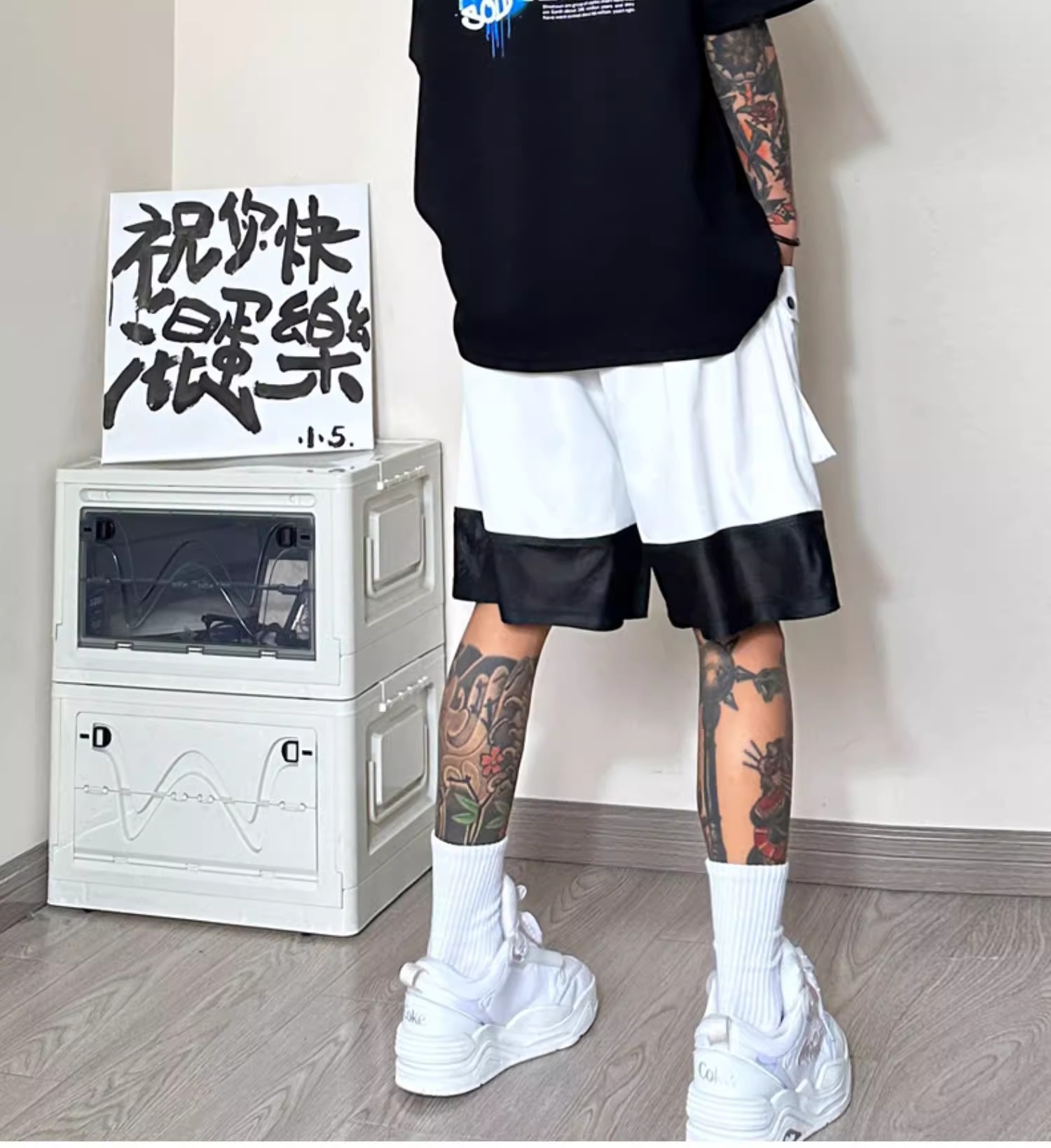 미국 농구 스포츠 반바지 남자 여름 흑백 스티칭 디자인 센스 바지 스트레이트 무릎 길이 바지 바지스토어 가기