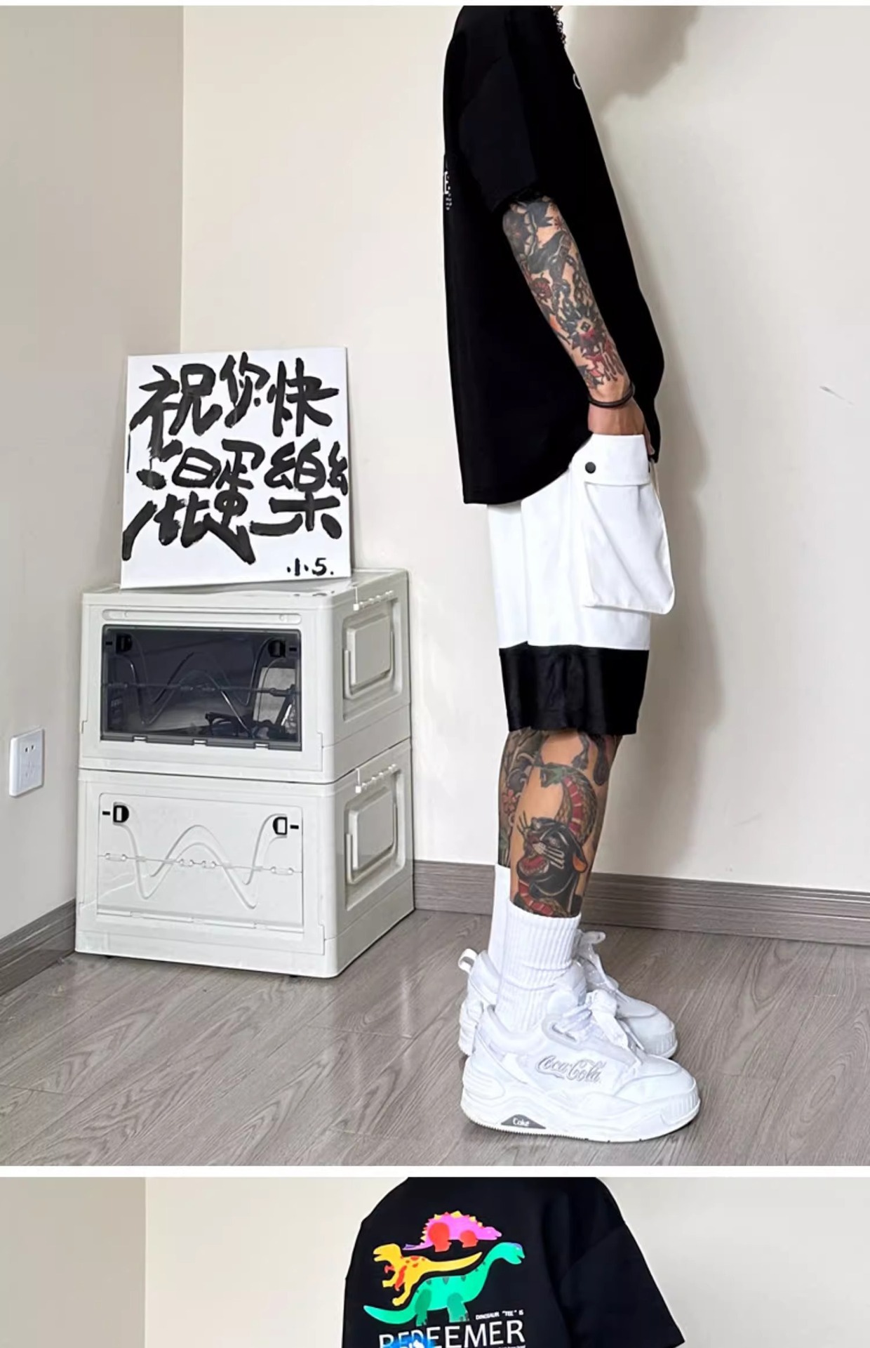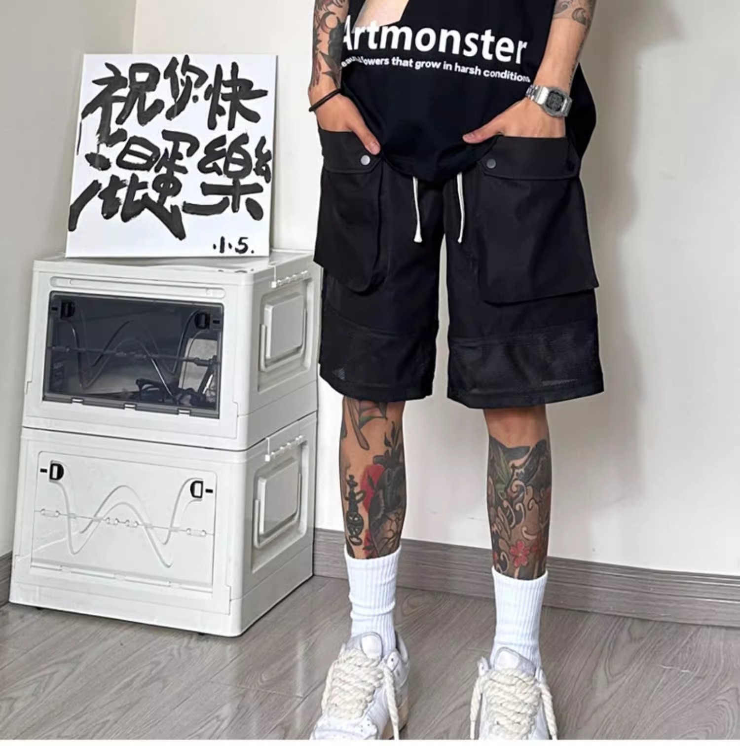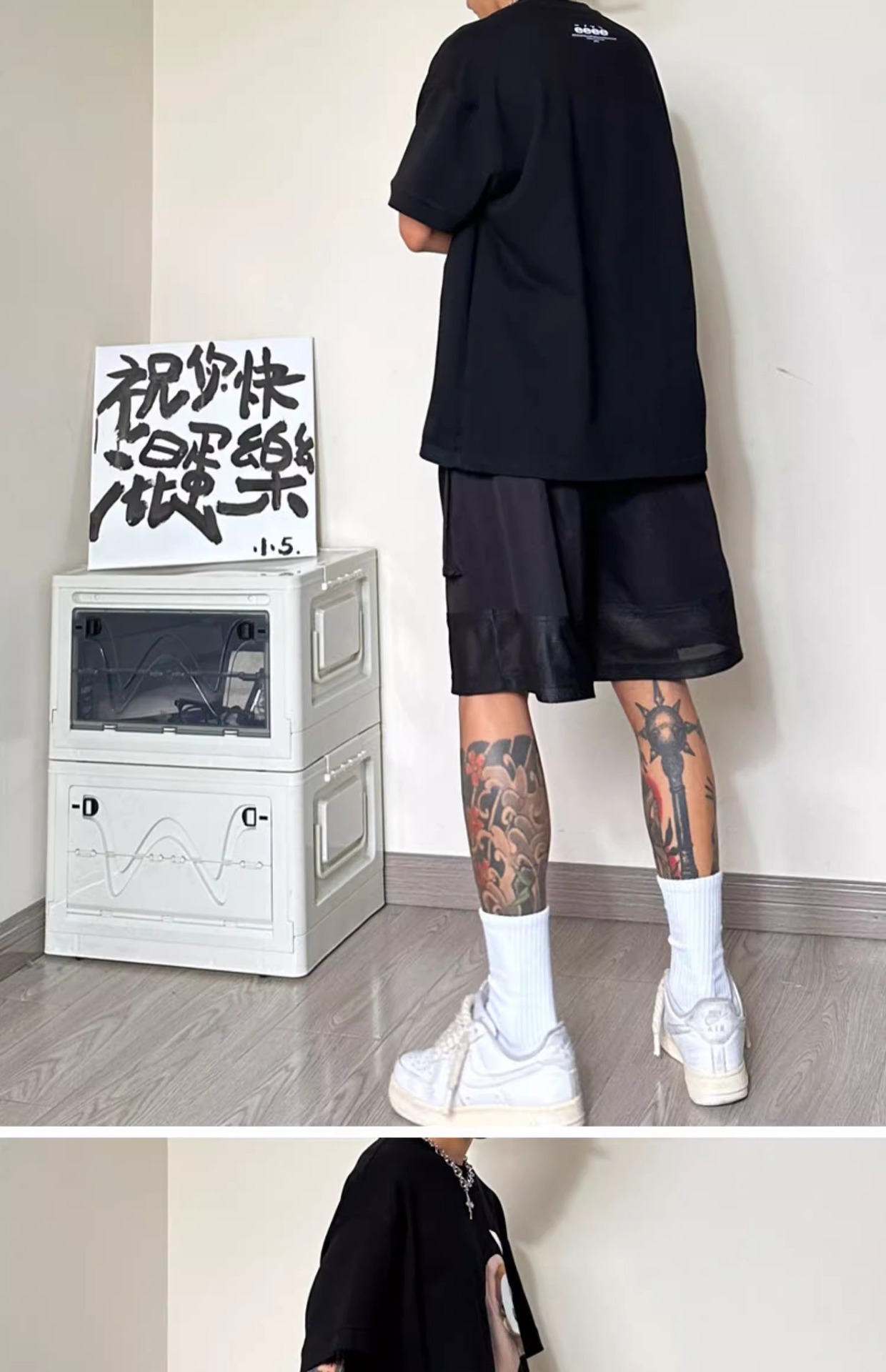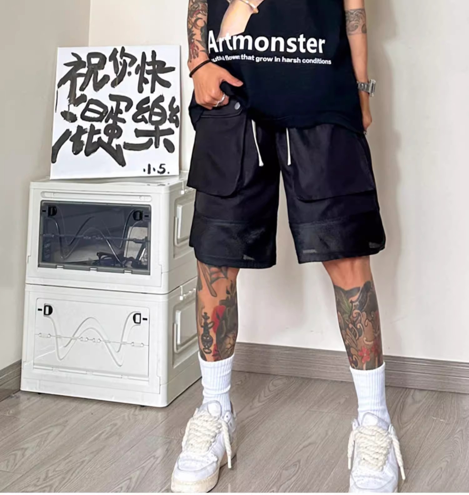 미국 농구 스포츠 반바지 남자 여름 흑백 스티칭 디자인 센스 바지 스트레이트 무릎 길이 바지 바지스토어 가기