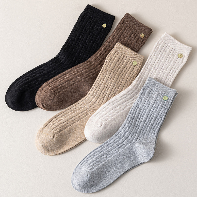 양말 여성의 가을과 겨울 체인 질감 양모 미드 튜브 양말 일본식 수직 줄무늬 트위스트 학술 스타일 캐주얼 양말