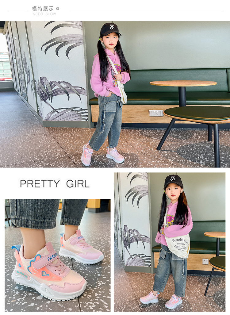 여자 신발 2024 봄과 가을 중학교 및 초등학생을위한 새로운 어린이 토레 신발 경량 소녀 운동화 트렌디스토어 가기