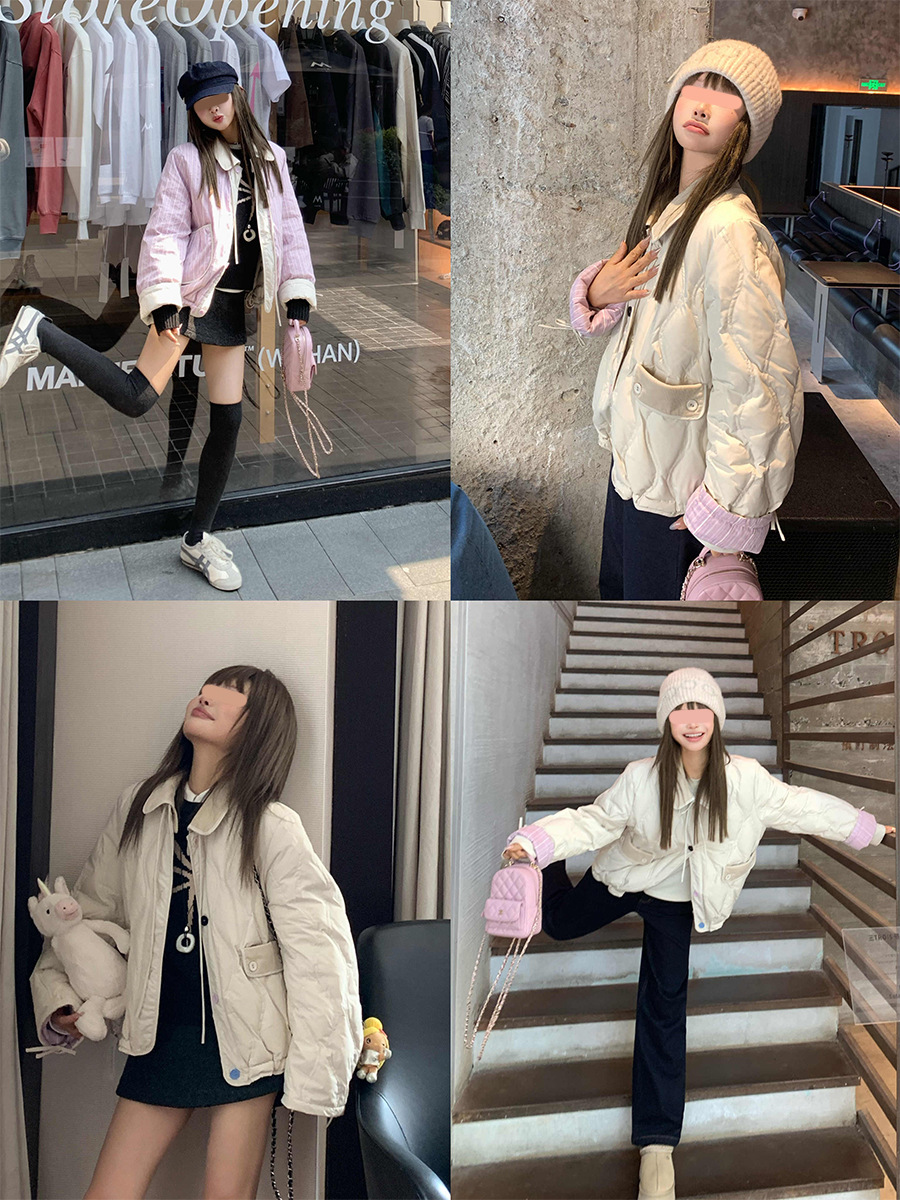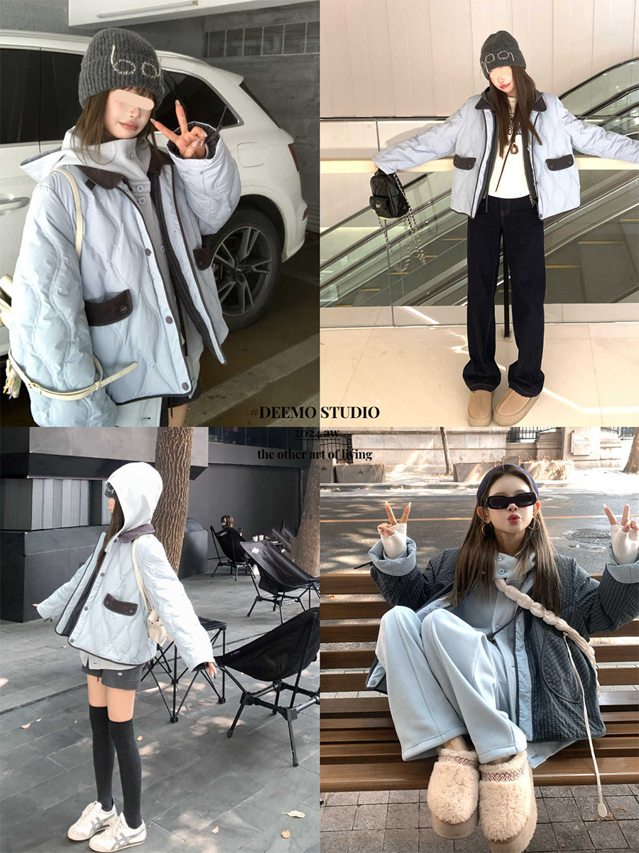 DEEMO [겨울 우유 케이크] 이동식 칼라 다운 코튼 패딩 재킷이있는 통근스토어 가기
