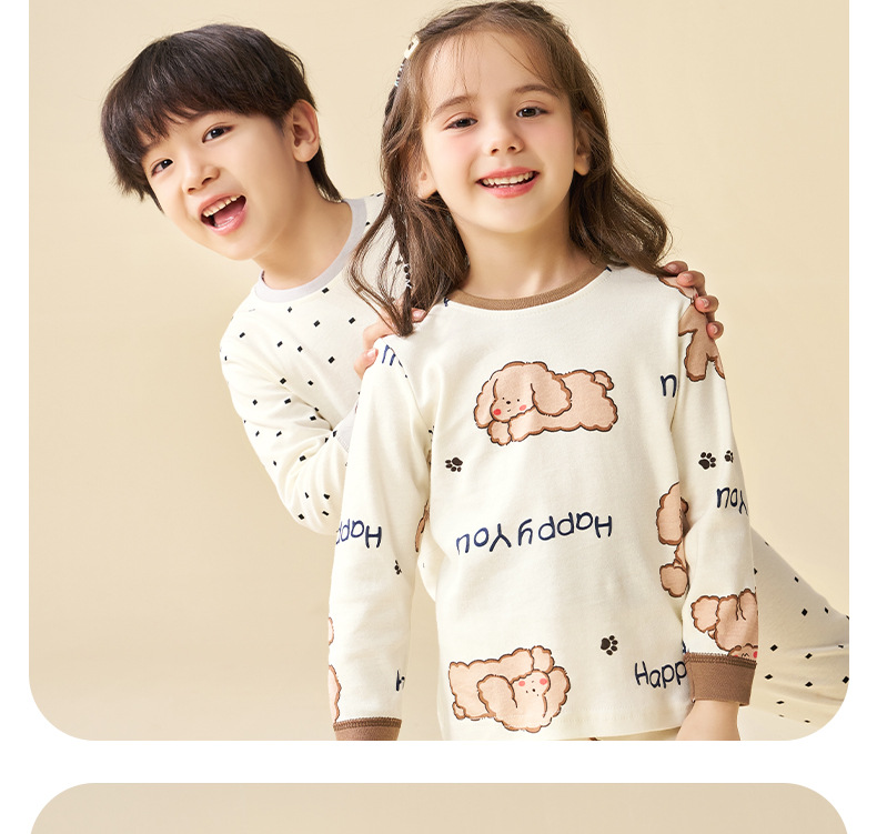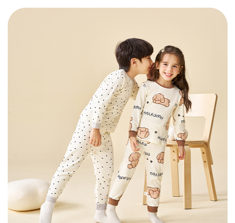 2025 가을, 겨울 어린이 속옷 세트 소년과 소녀를위한 새로운 순수 면화 가을 옷과 긴 바지 아기 아기 가정 옷스토어 가기