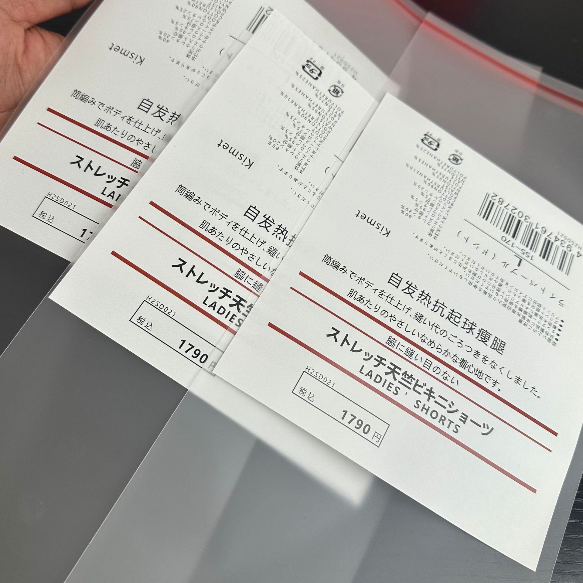 레깅스 포장 백 일본 무인쇄 스티커 라벨 자체 발열 보풀 방지 슬림 레깅스 포장 양말 라벨