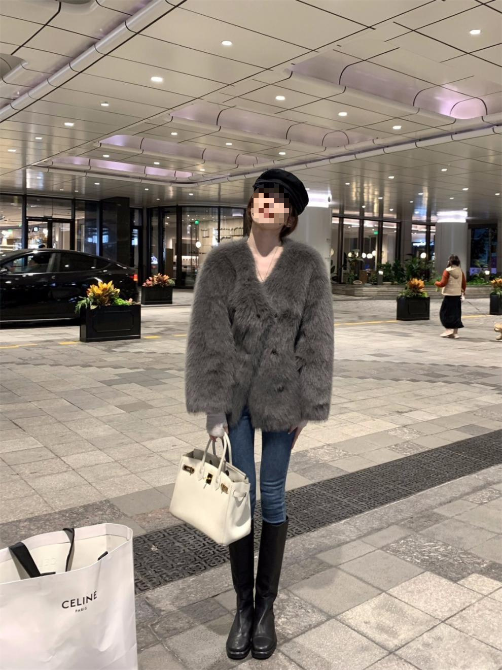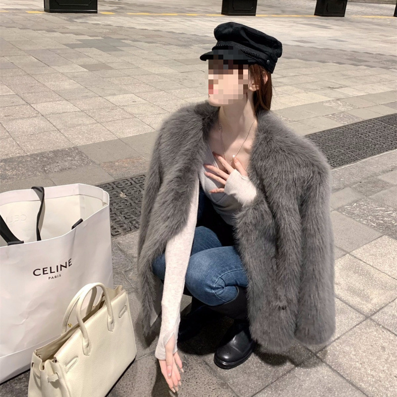 크리스마스 로브 새해 로브 2024 Toka New Young Green Fox Maomao 두꺼운 따뜻한 코트스토어 가기