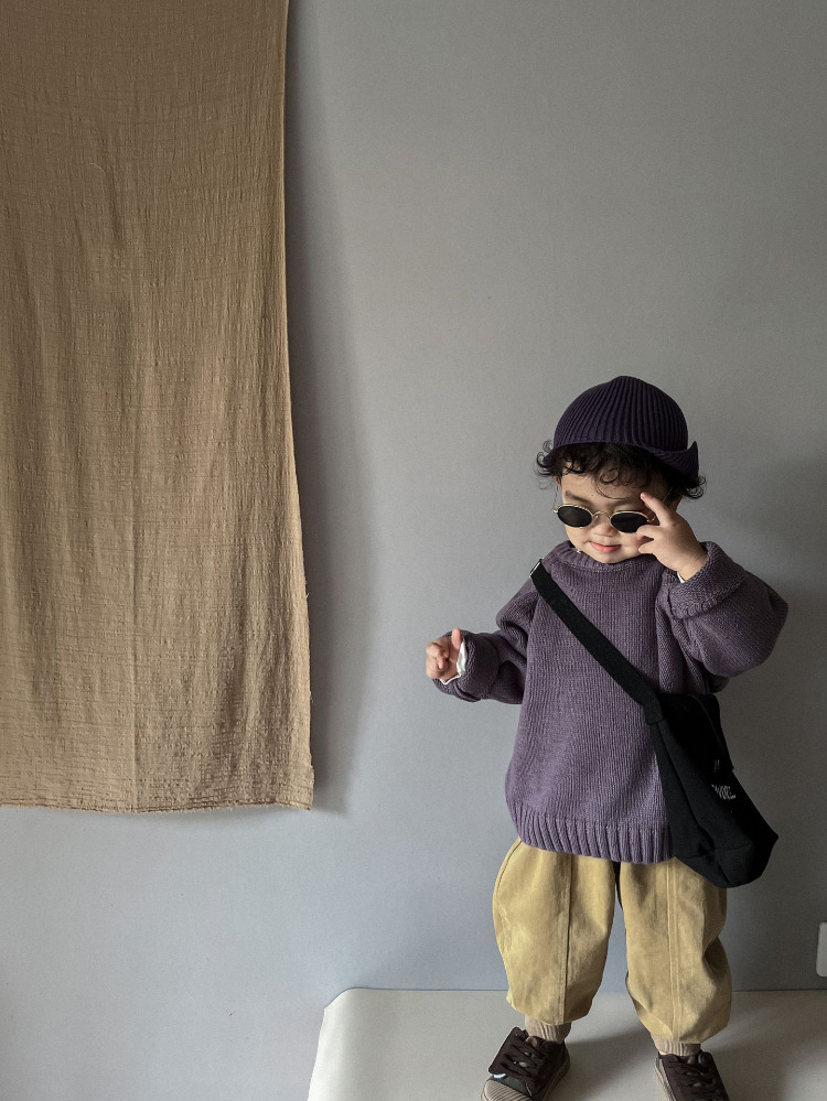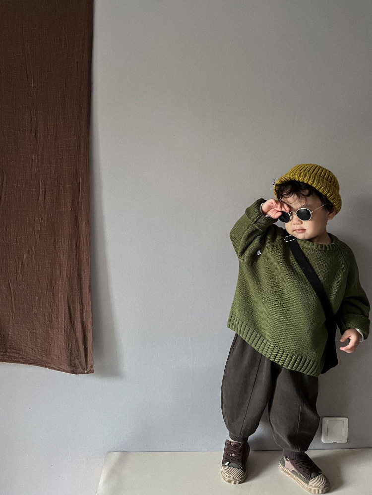 2025 가을, 겨울 새로운 어린이 느슨한 스웨터 바닥 셔츠 한국 스타일 남성과 여성 아기 복고풍 풀오버 스웨터 탑스토어 가기