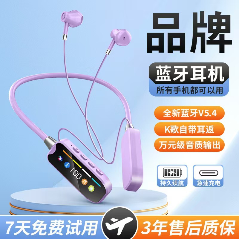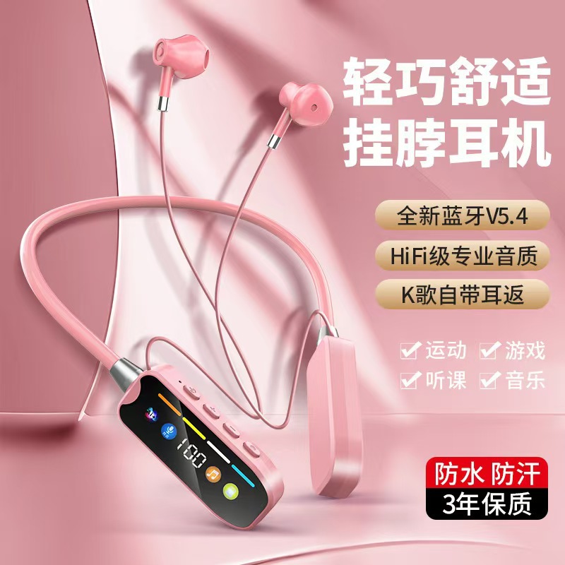 S10 무선 넥밴드 블루투스 이어폰, 초장시간 배터리, 스포츠 라이브 방송, 카드 삽입, 이어폰 리턴, 디지털 디스플레이, 안드로이드 블루투스 5.4