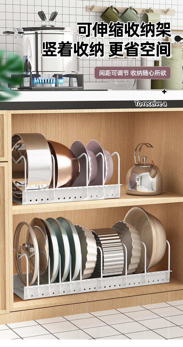 조정 가능한 개폐식 주방 보관 랙 포트 및 접시 냄비 커버 랙 보울 및 접시 배수 보관 아티팩트 포트 랙 카운터 탑스토어 가기