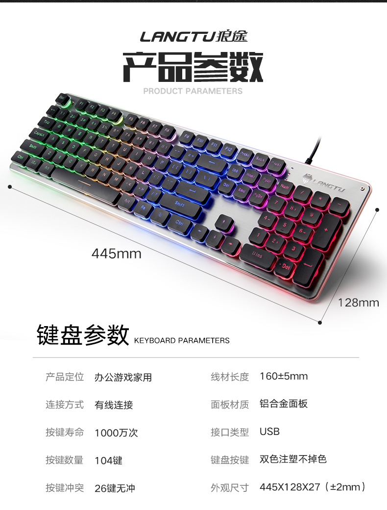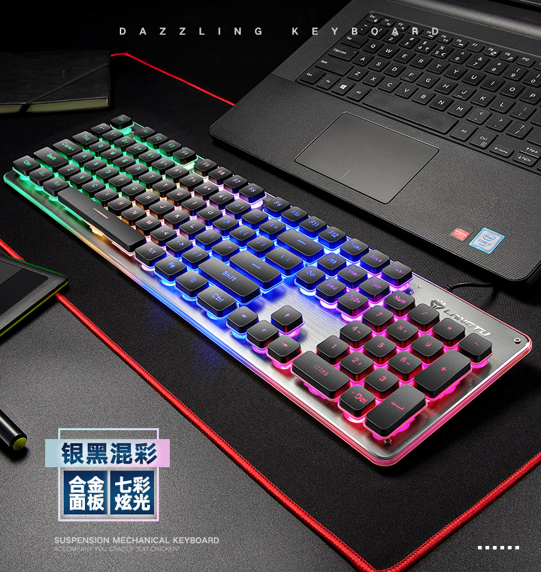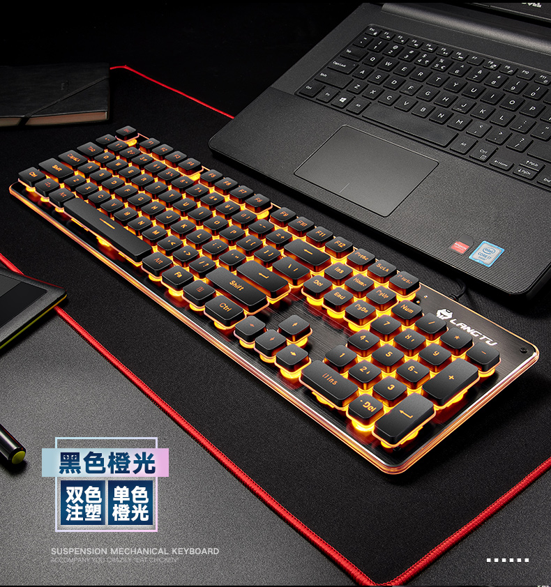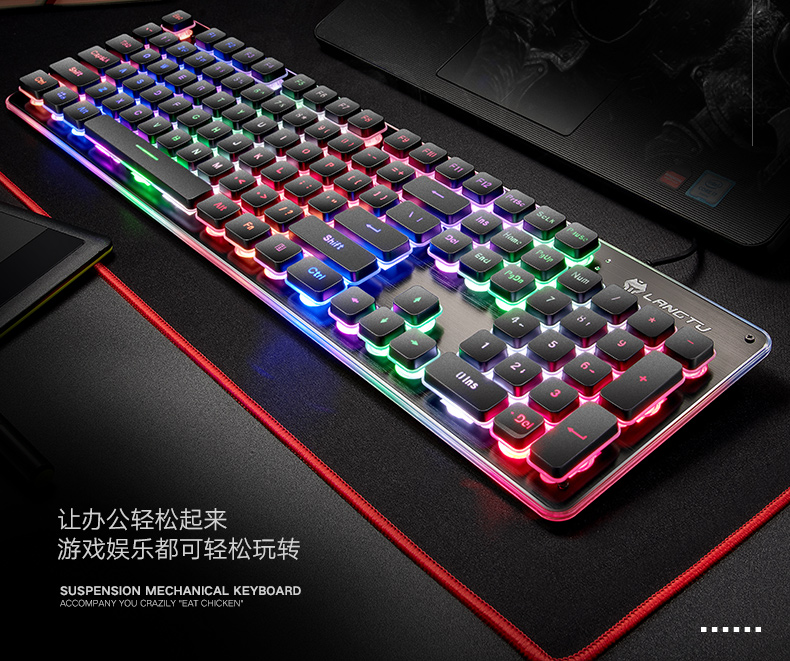 기계 느낌 유선 키보드 마우스 세트 노트북 데스크탑 외부 여자 사무실 음소거 공기 소스
