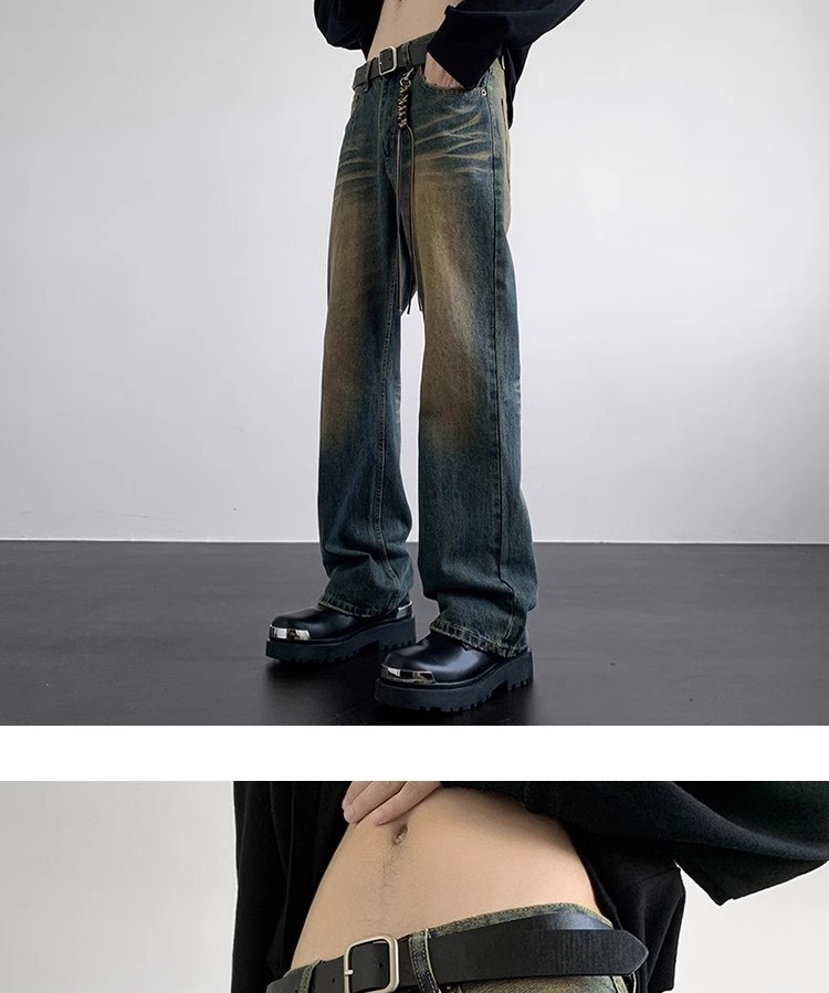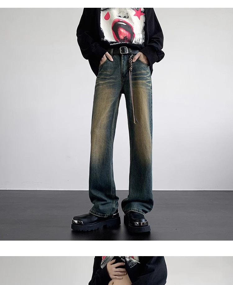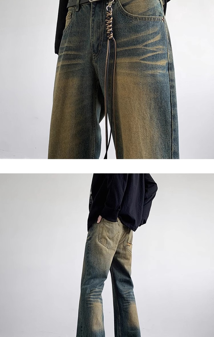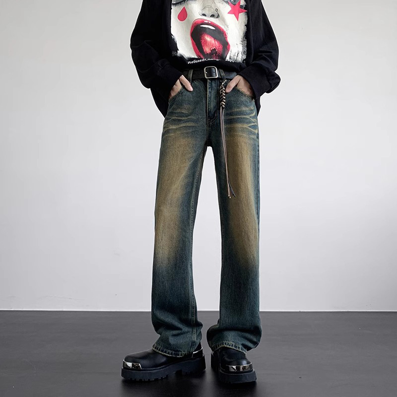 아메리칸 스타일 레트로 올드 스트레이트 마이크로 라 청바지 남성 봄과 가을 뉴 하이 스트리트 클렌핏 스트리트 캐주얼 바지스토어 가기