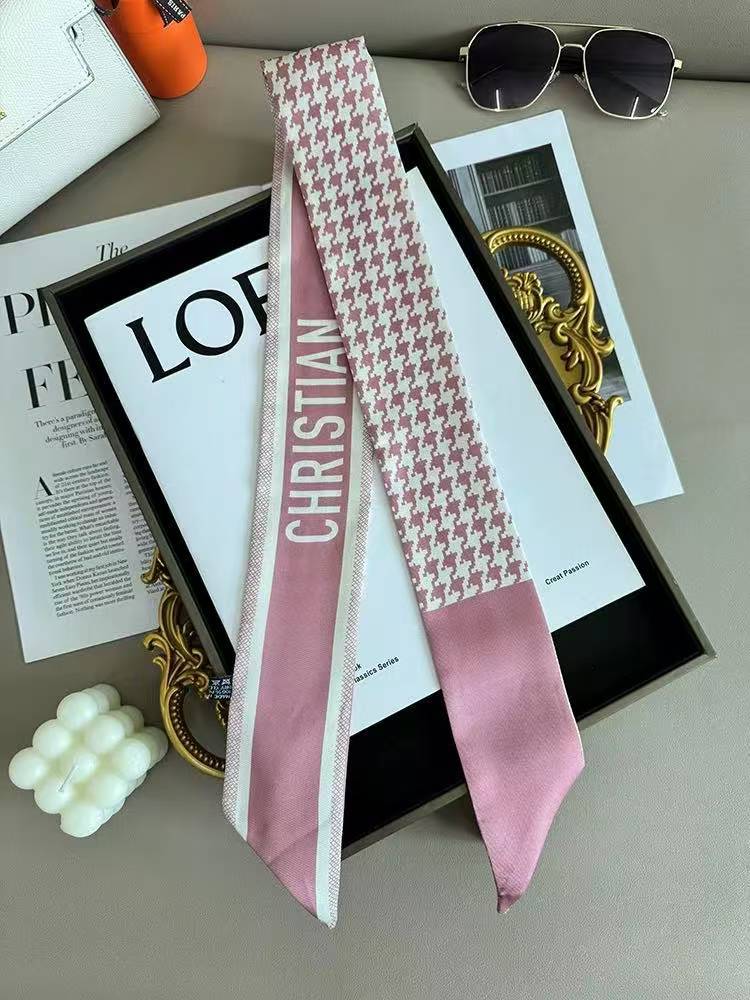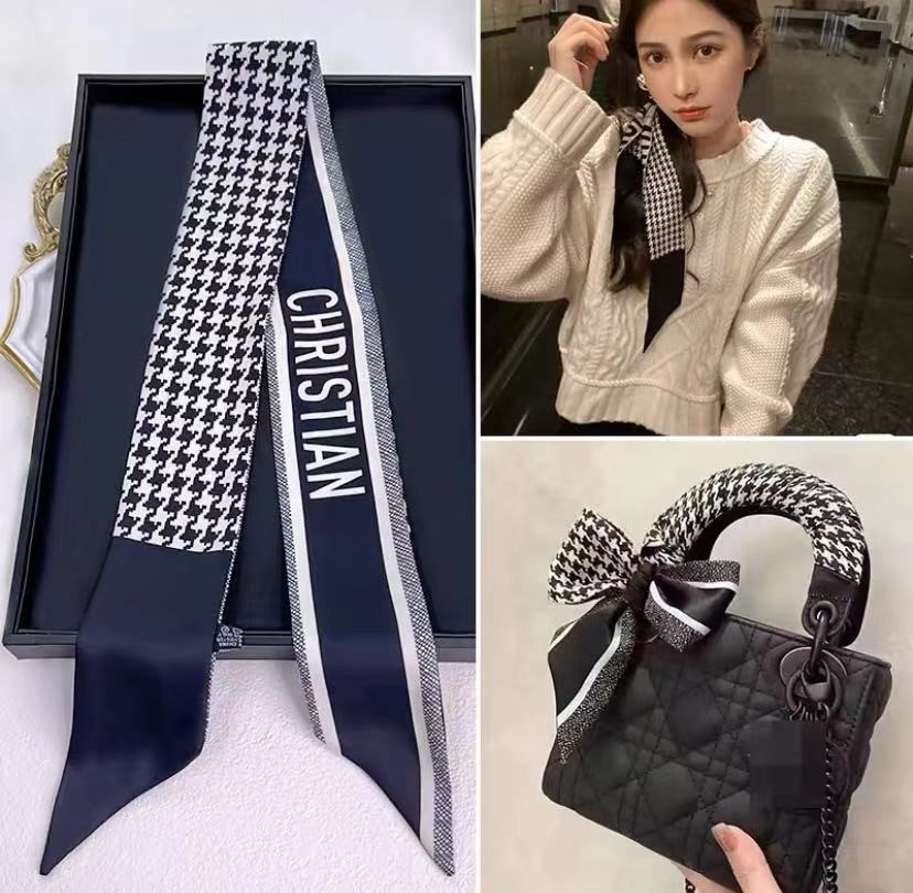 2024 새로운 Houndstooth 작은 리본 올 매치 실크 작은 실크 스카프 넥타이와 붕대 헤어 헤드웨어 패션 장식 스카프