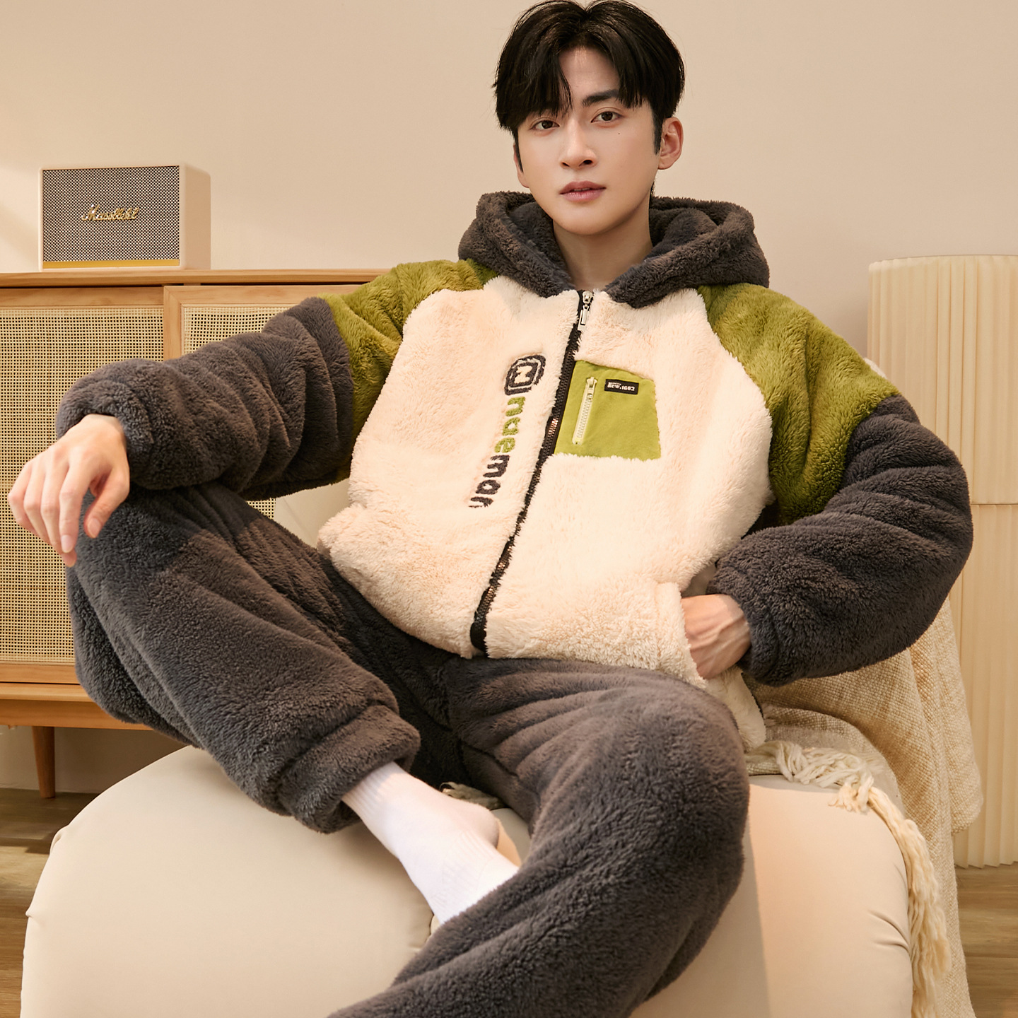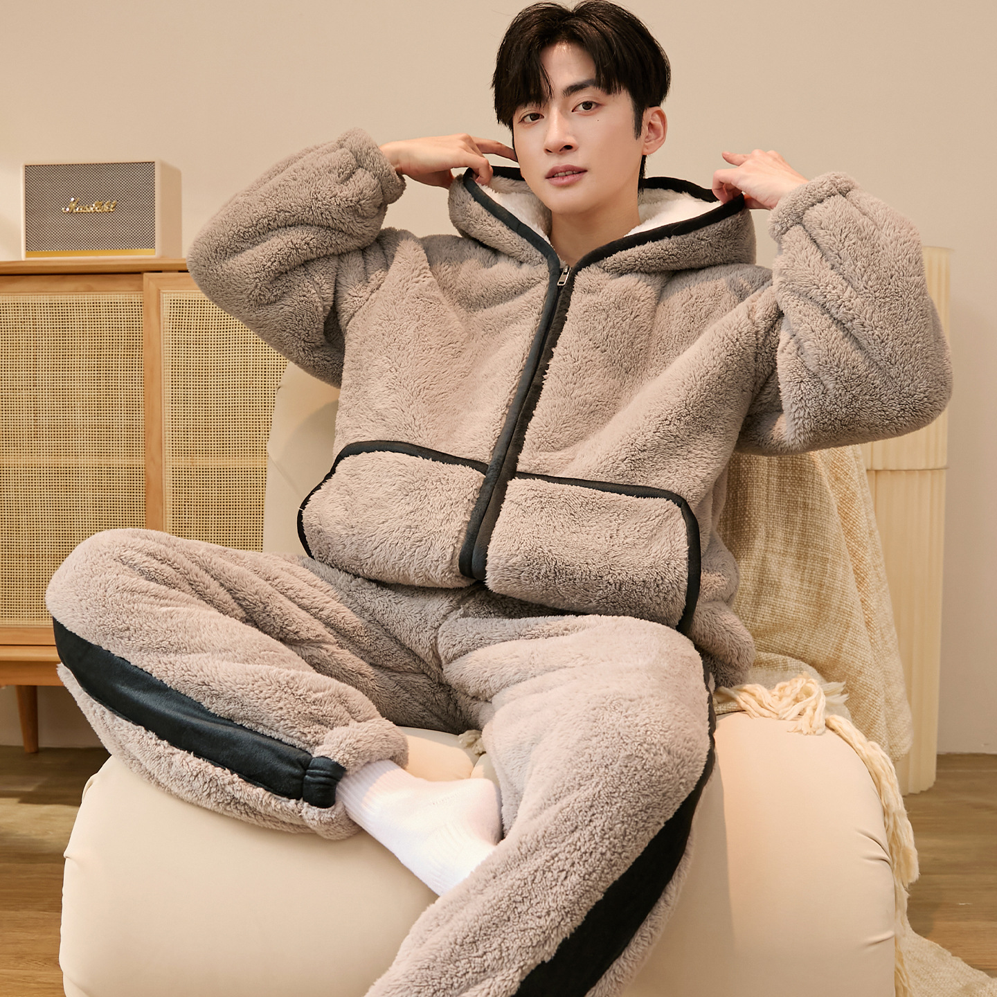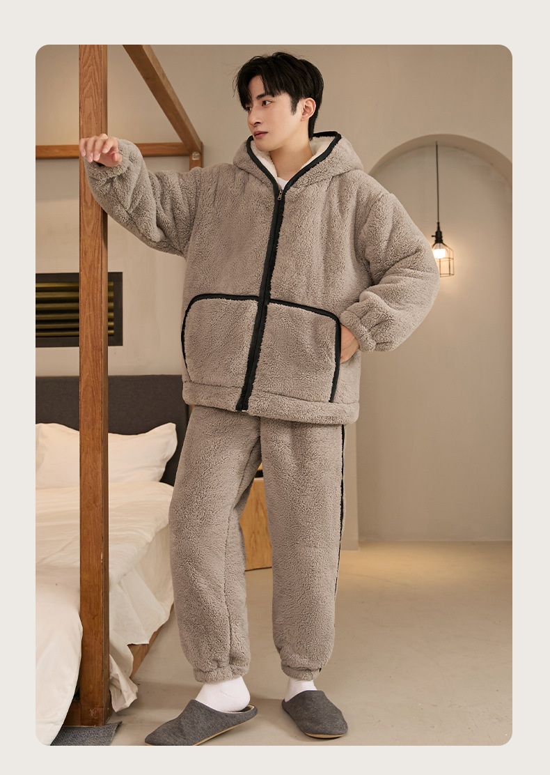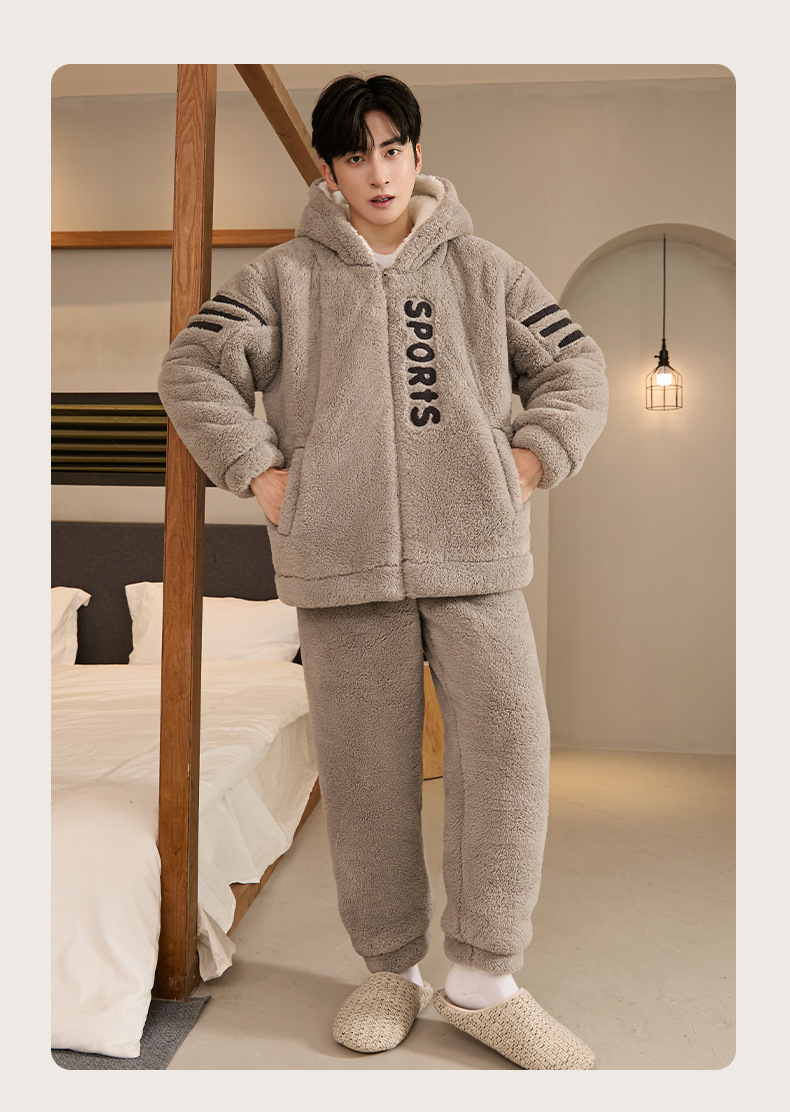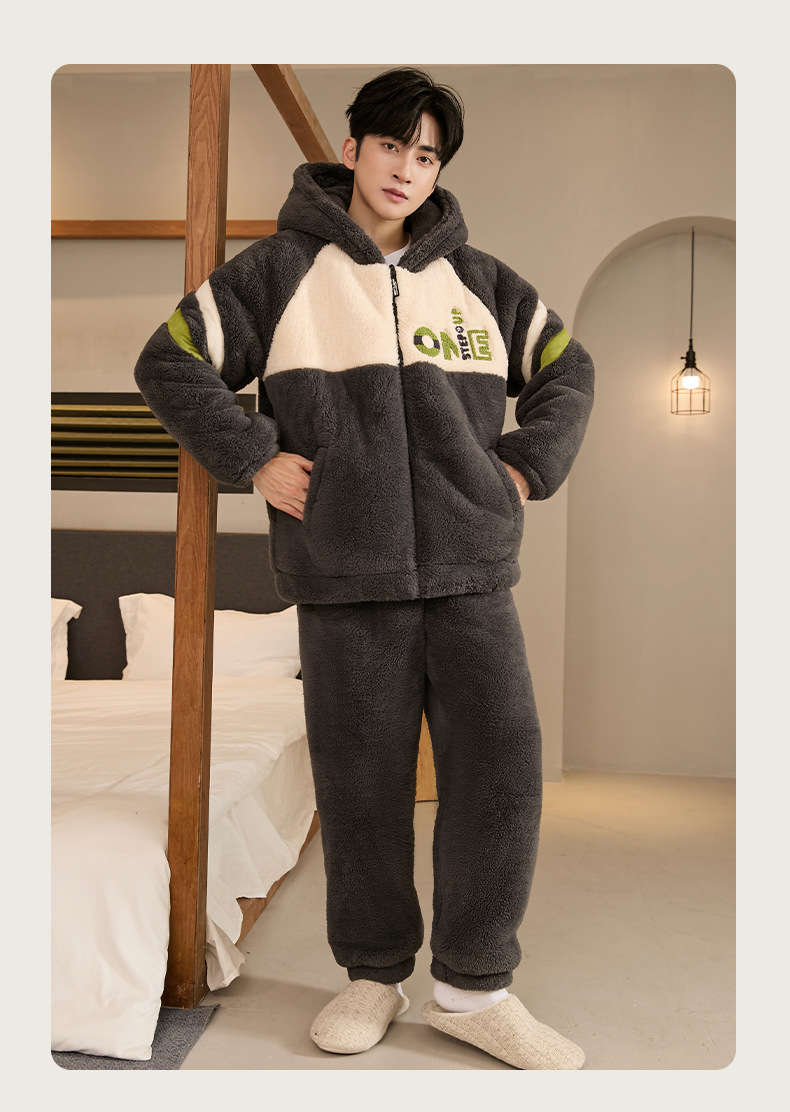 두꺼운 플란넬 지퍼 남성 잠옷 겨울 캐주얼 플러스 벨벳 따뜻한 세트 대형 사이즈 100kg 남성 홈웨어스토어 가기