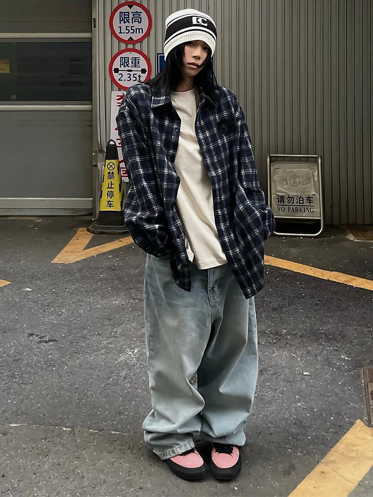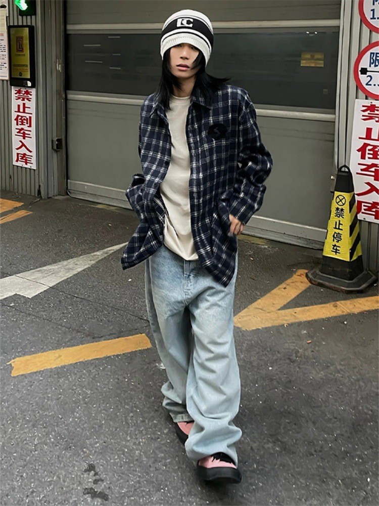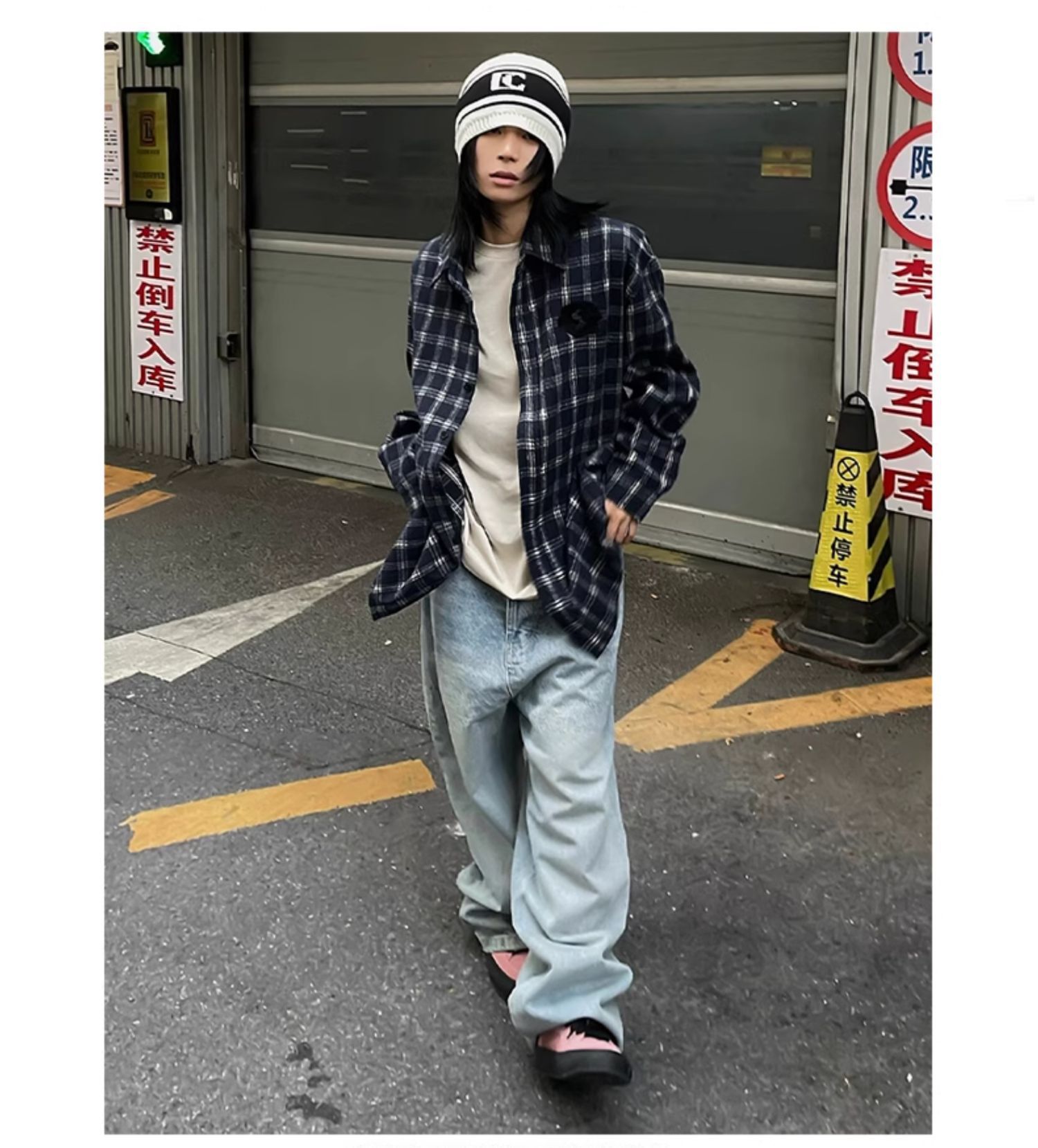아메리칸 스타일 레트로 격자 무늬 긴팔 셔츠 남자의 2024 여름 새로운 느슨한 오버 사이즈 캐주얼 셔츠 재킷 트렌디스토어 가기