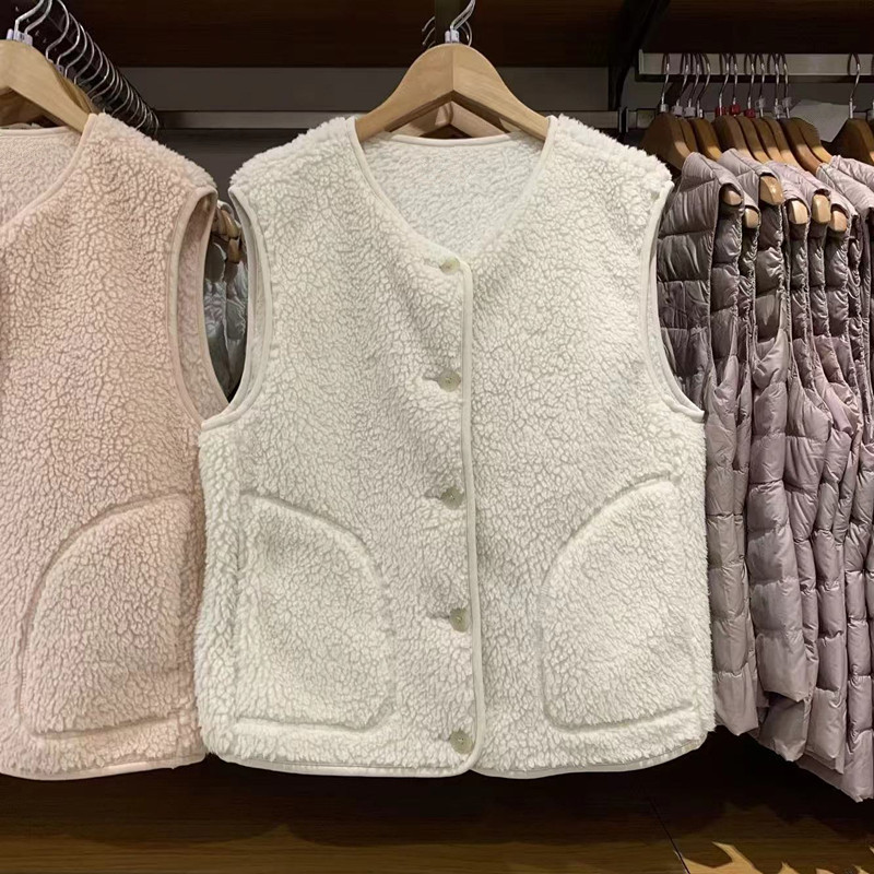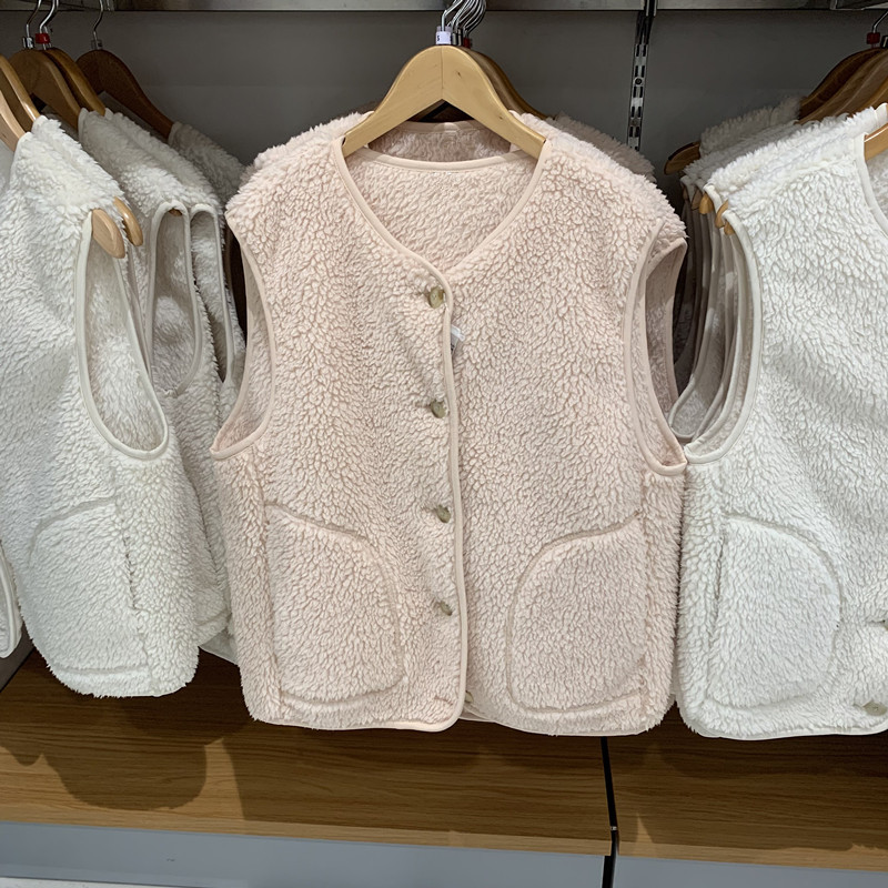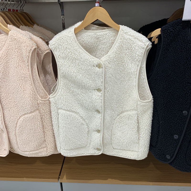 일본 여성복 2024 가을 겨울 양털 느낌 폴라 플리스 조끼 스탠드 칼라 보온 조끼 자켓 477057스토어 가기