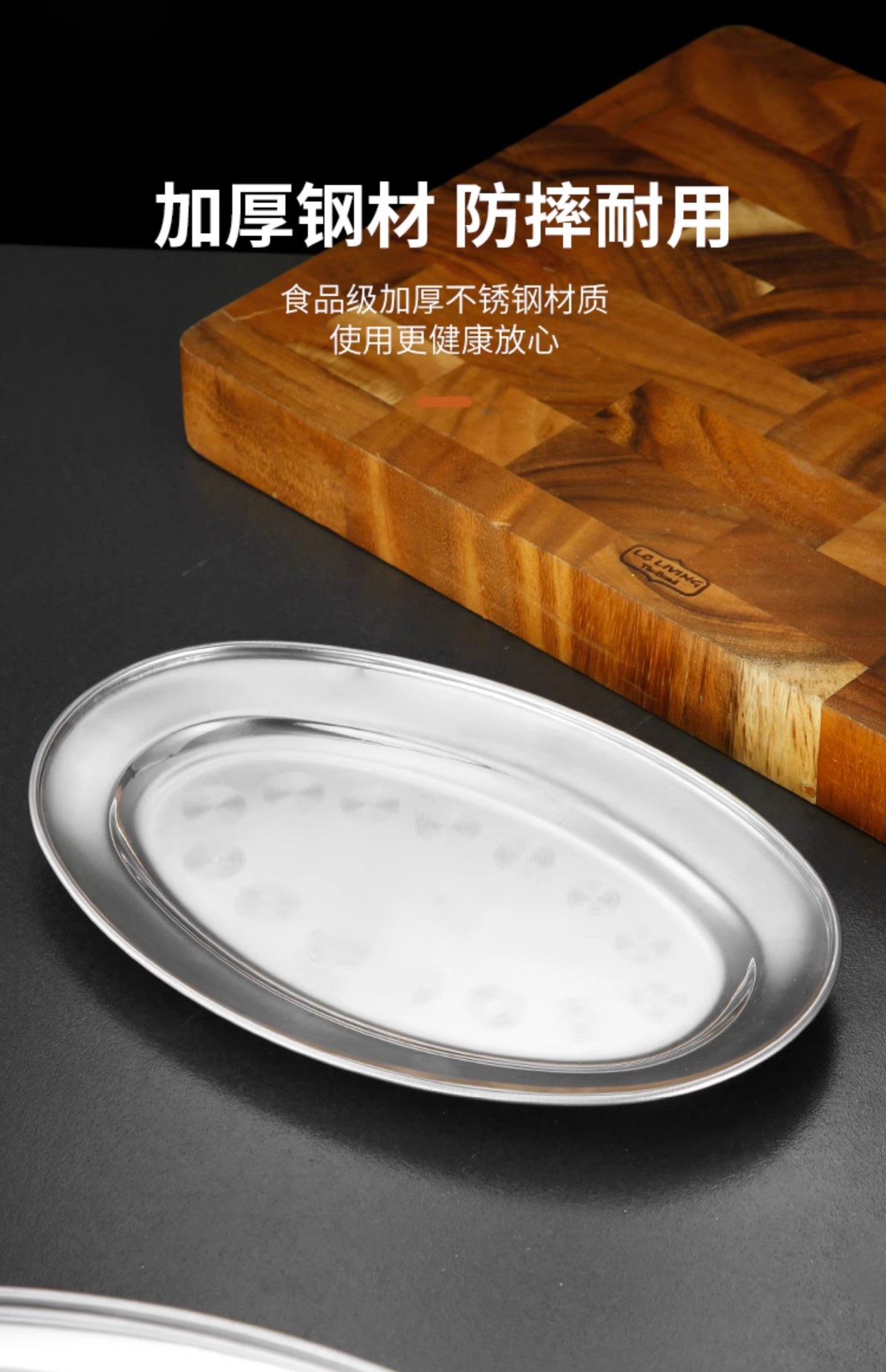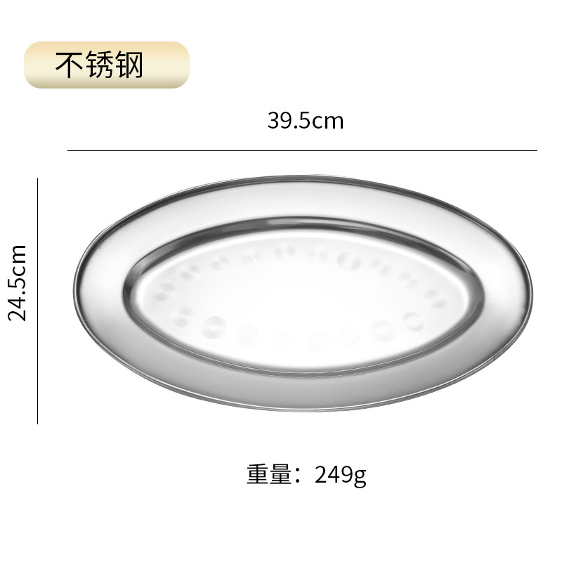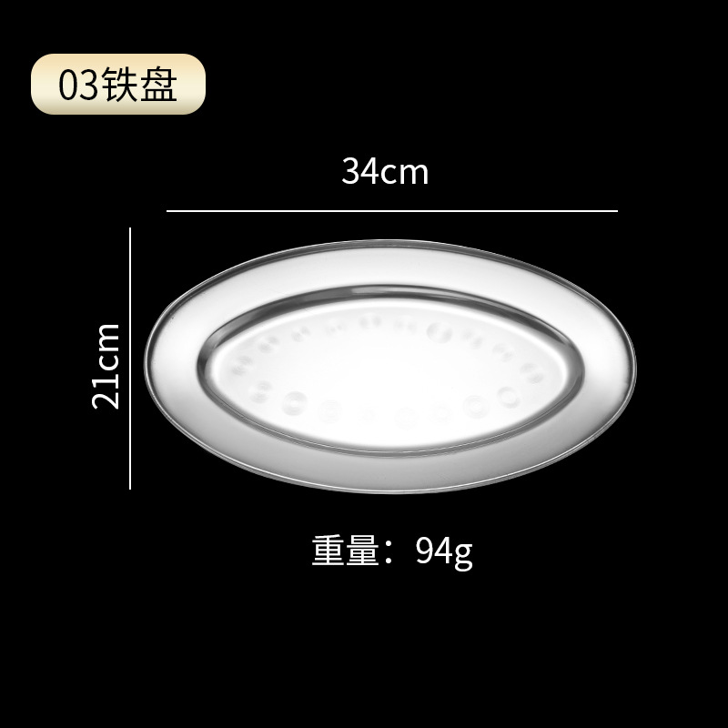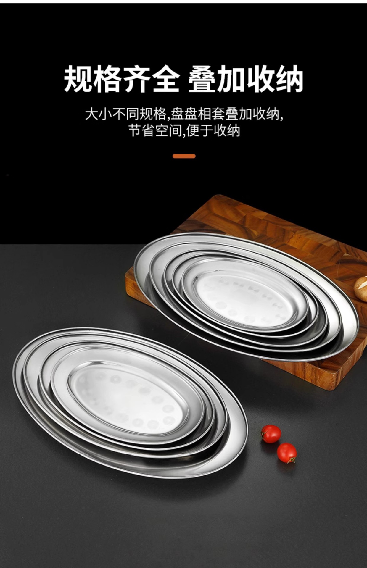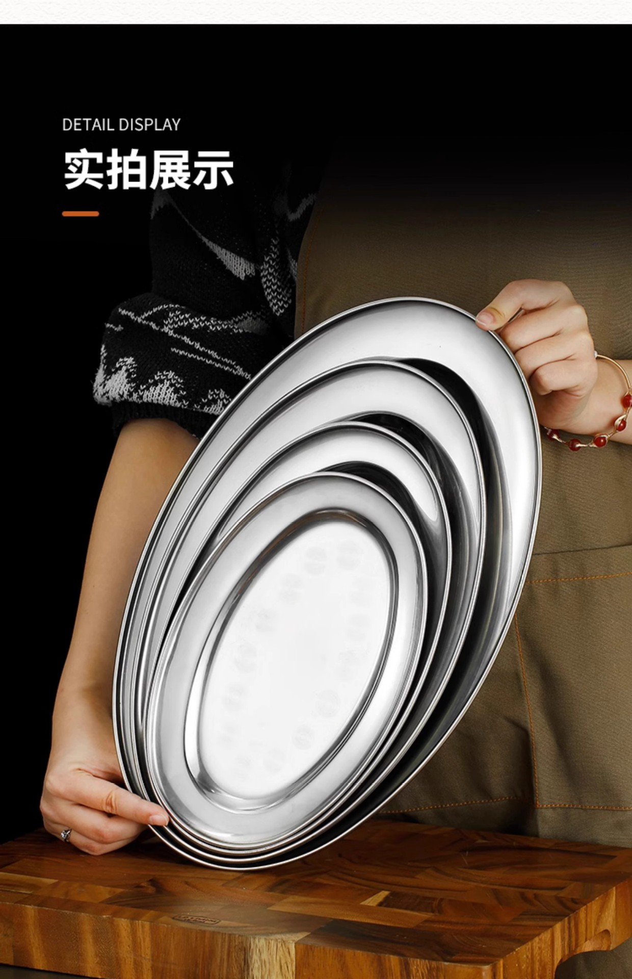 스테인레스 스틸 타원형 플레이트 두꺼운 접시 상업용 대형 찐 어판 쌀 그릇 플레이트 핫 팟 뷔페 플레이트 바베큐 플레이트스토어 가기