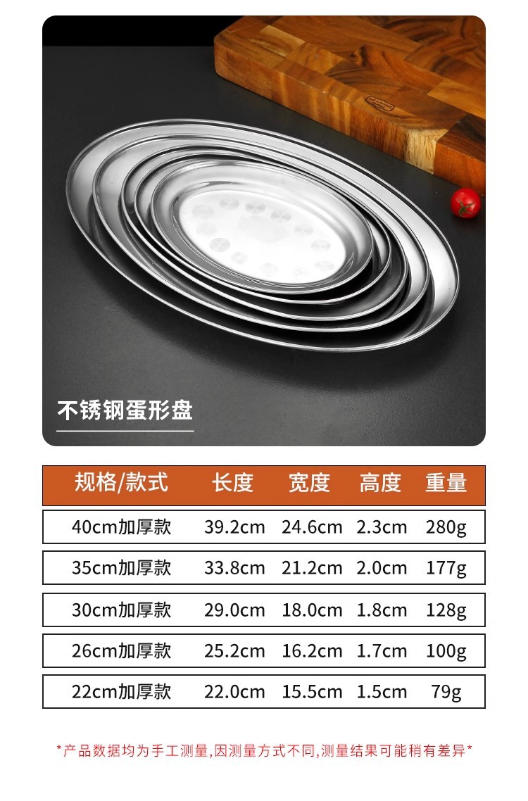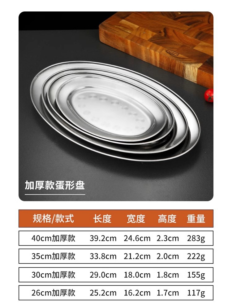 스테인레스 스틸 타원형 플레이트 두꺼운 접시 상업용 대형 찐 어판 쌀 그릇 플레이트 핫 팟 뷔페 플레이트 바베큐 플레이트