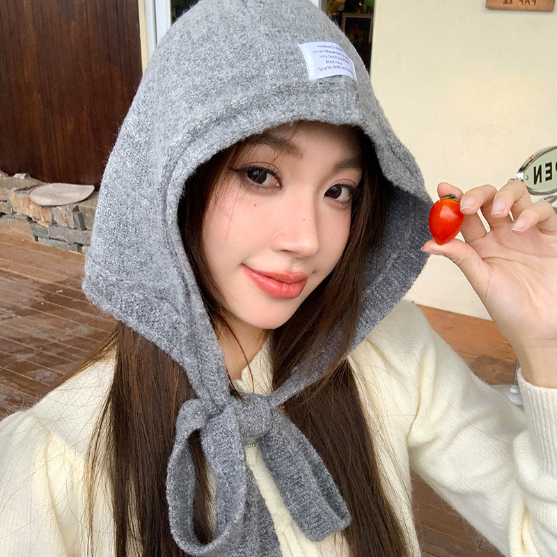큰 머리 붉은 흰색 발라 클라 바 모자 따뜻한 귀 보호 니트 모자 여성의 겨울 넥타이 모자 조수스토어 가기