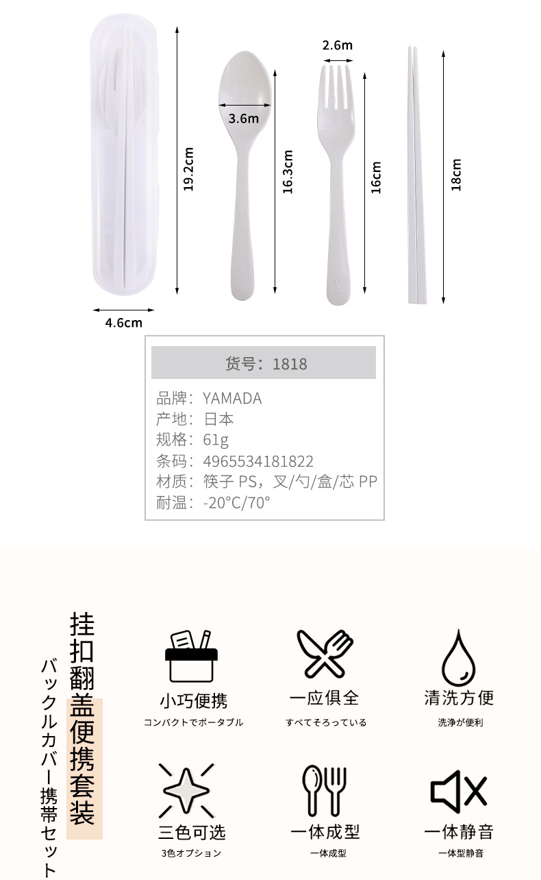 일본 식기 세트 어린이 젓가락 숟가락과 포크 3 피스 세트 싱글 젓가락 숟가락 상자 학생 여행 야외 휴대용 식사스토어 가기