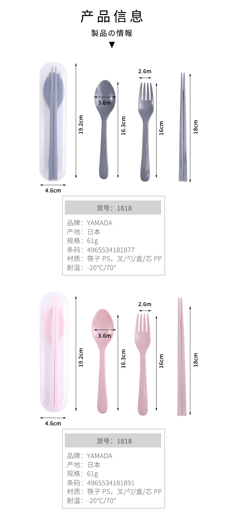 일본 식기 세트 어린이 젓가락 숟가락과 포크 3 피스 세트 싱글 젓가락 숟가락 상자 학생 여행 야외 휴대용 식사