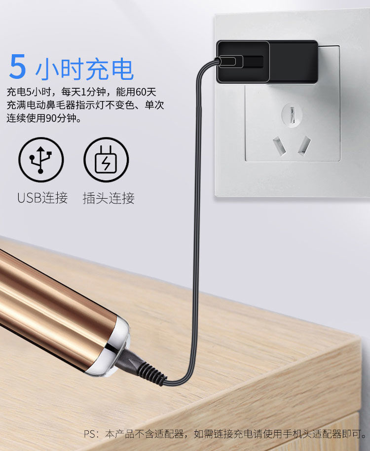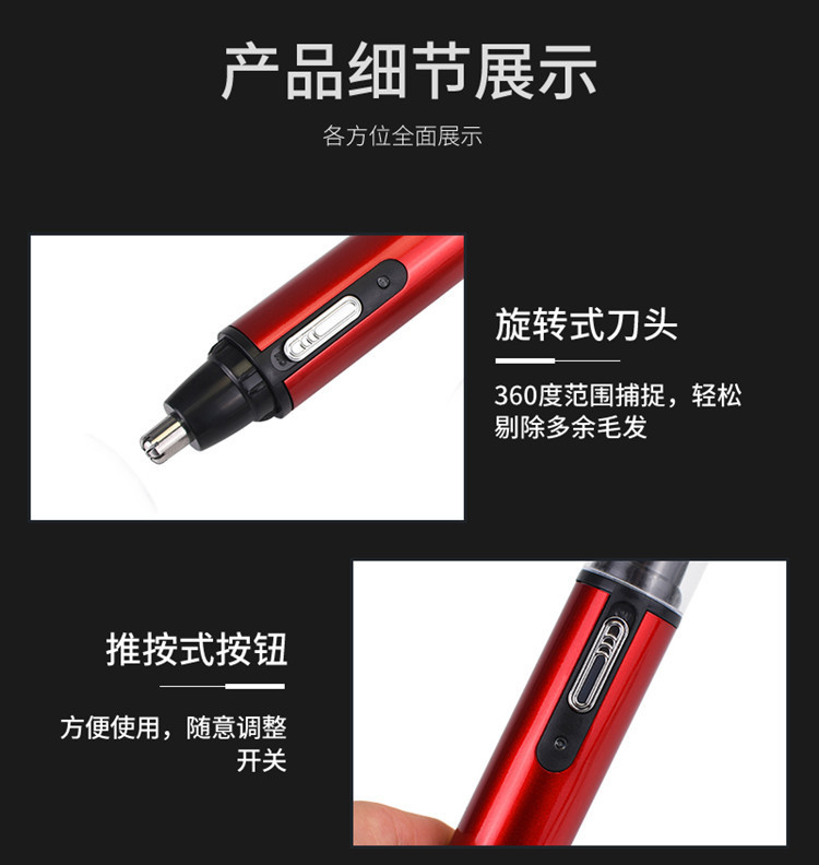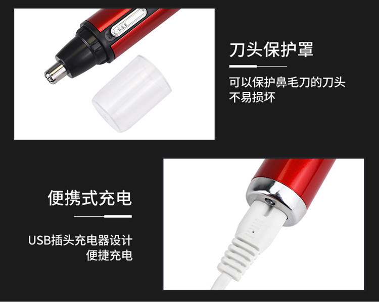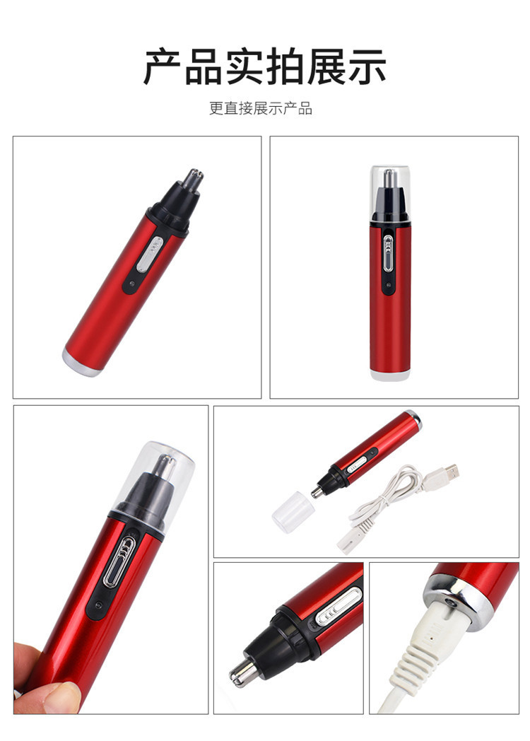 국경 간 전기 코 헤어 트리머 모든 금속 알루미늄 튜브 바디 USB 충전식 코 트리머 면도 사이드 번 헤어 커터